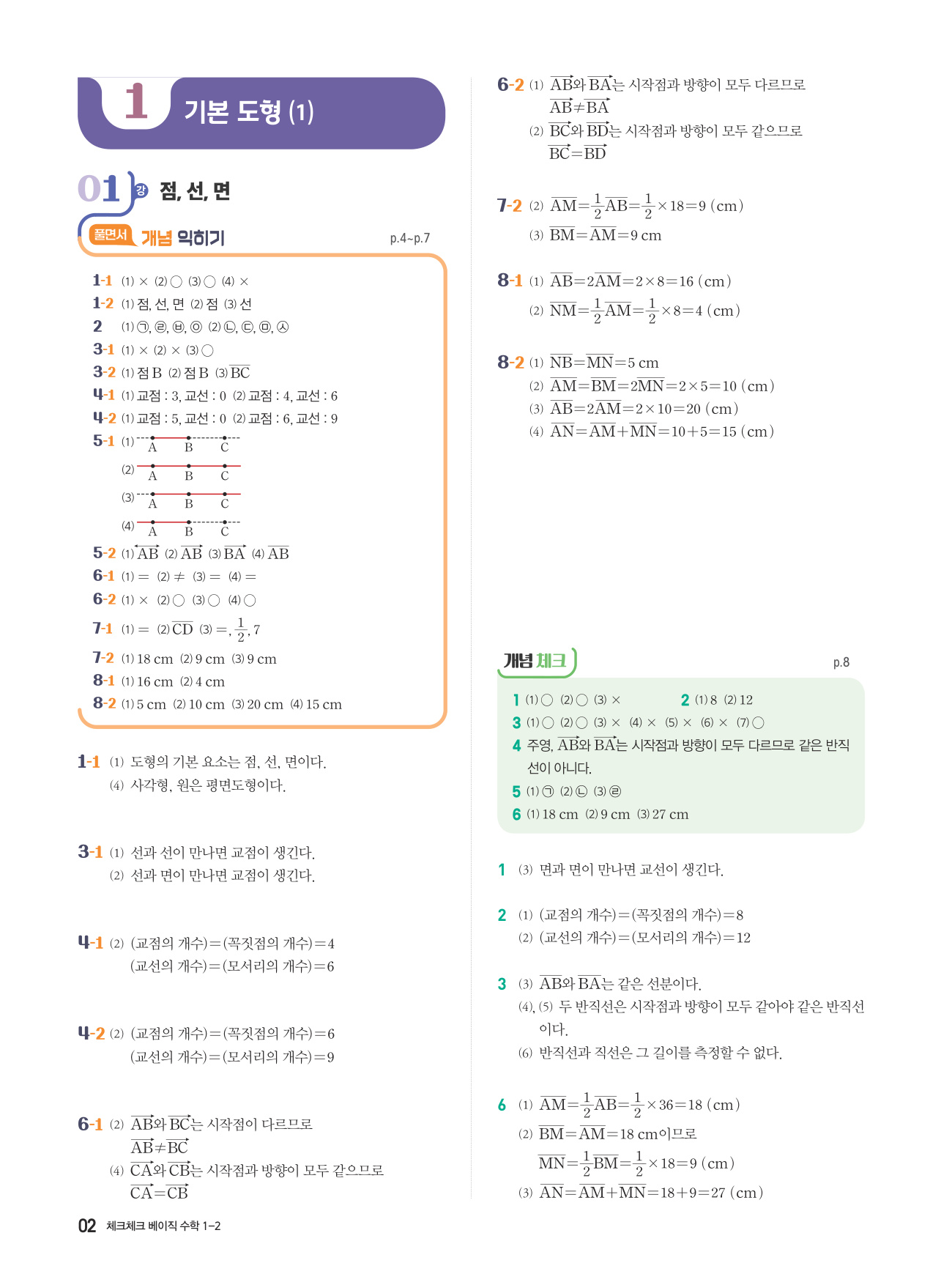시중의 중학 수학 개념서를 쓰면서 여러 이유로 불편했던 독자들을 위하여 개념 이해 문제부터 적용 문제까지 쉬운 문제로만 구성한 쉬운 개념서를 출간하였습니다. 체크체크 수학이나 타 회사의 개념서를 한 권 다 풀기 어려웠었다면 체크체크 베이직 수학을 추천합니다. 자신의 이해도에 따라 하루에 한 강, 아니면 2강~3강까지 공부가 가능하도록 개념을 아주 잘게 쪼개어 다양하게 익힐 수 있도록 하였습니다.