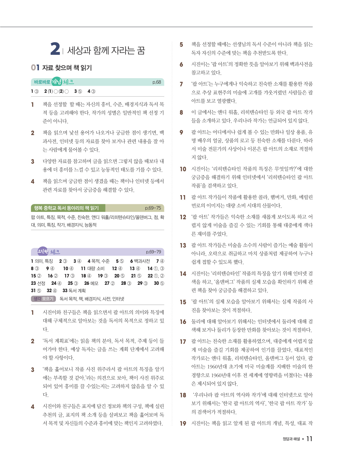 - 교과서 학습 활동과 예시 답안 수록