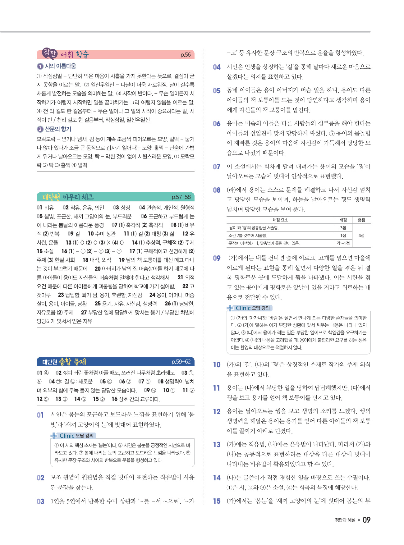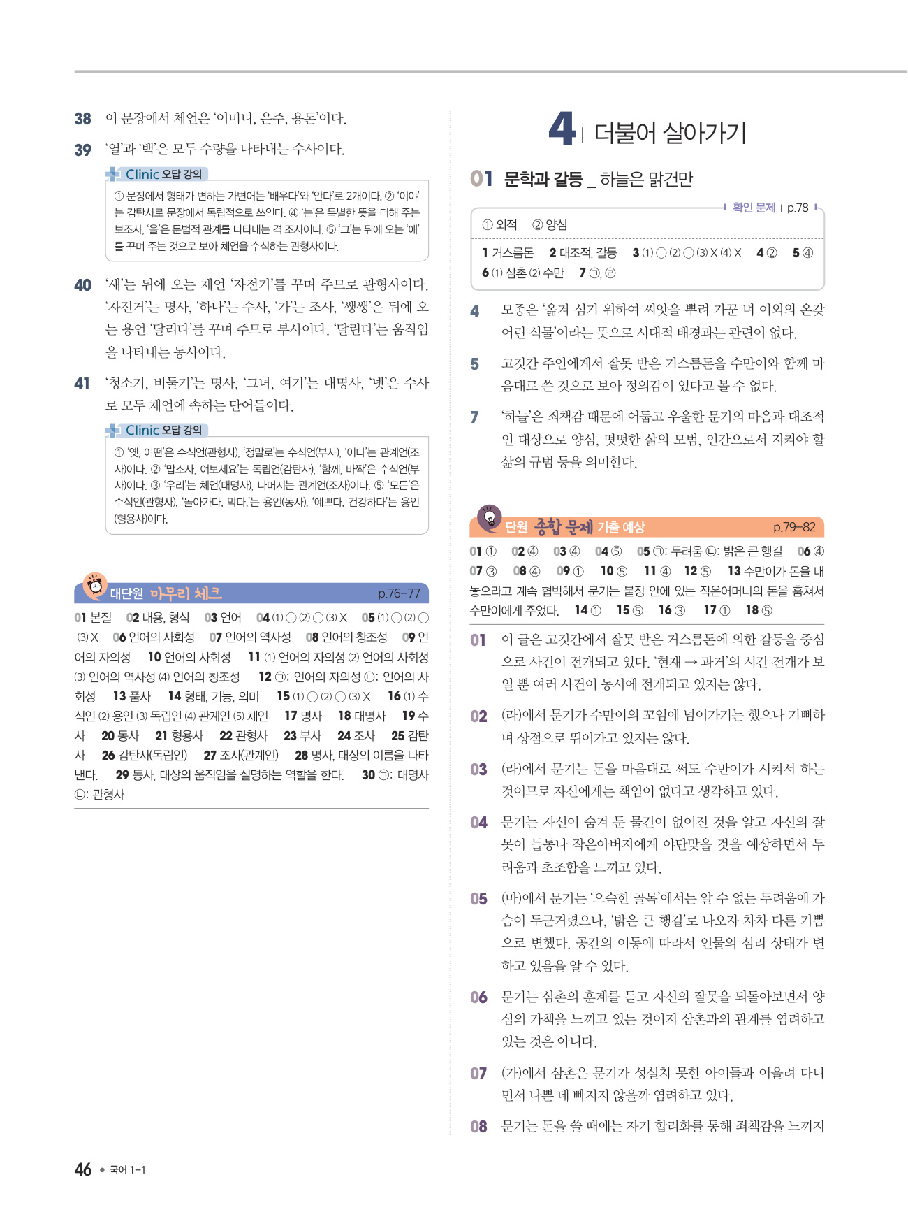 - ‘소단원&대단원 종합 문제’: 소단원을 아우르는 핵심 문제, 대단원의 내용을 종합적으로 점검하는 실전 문제
