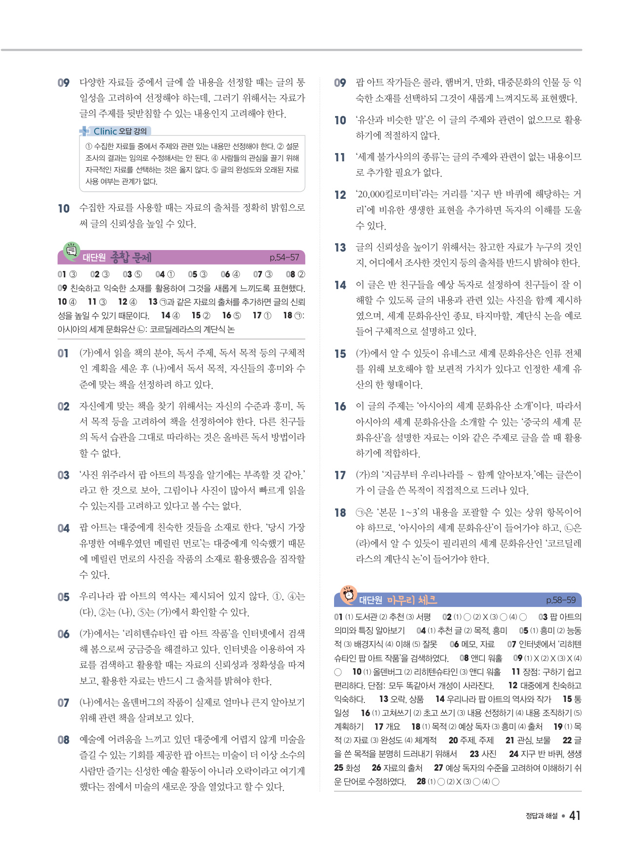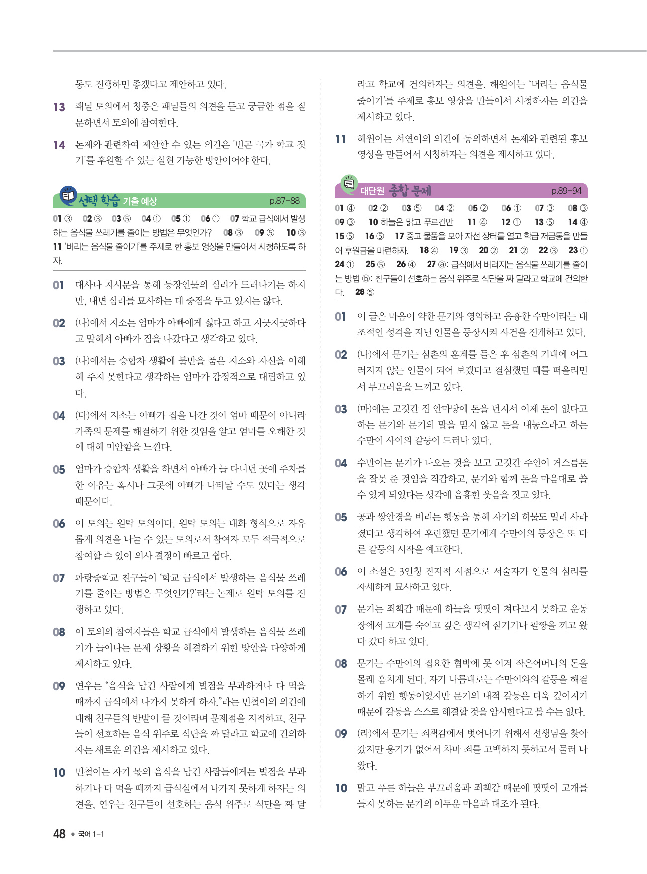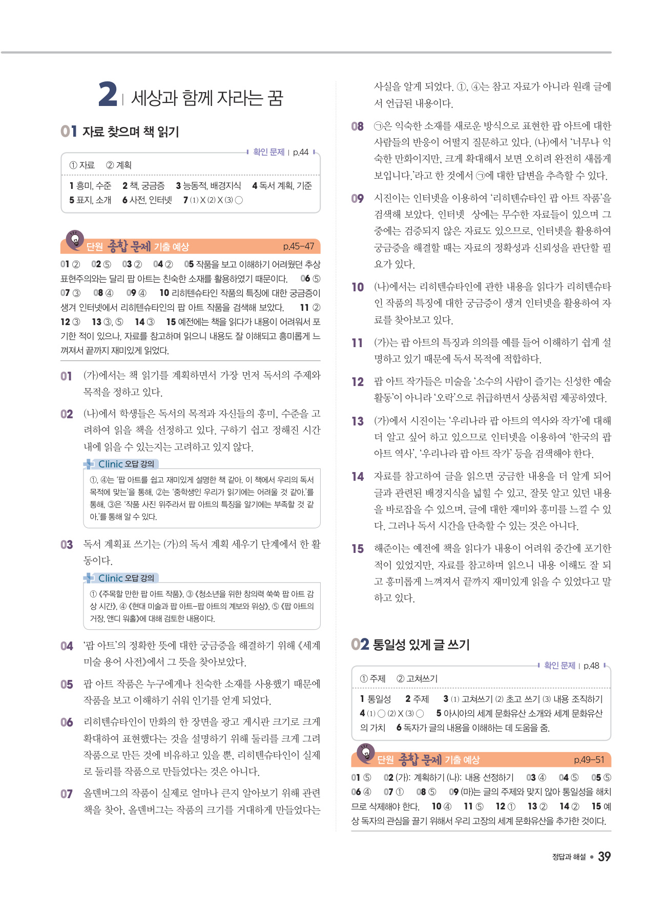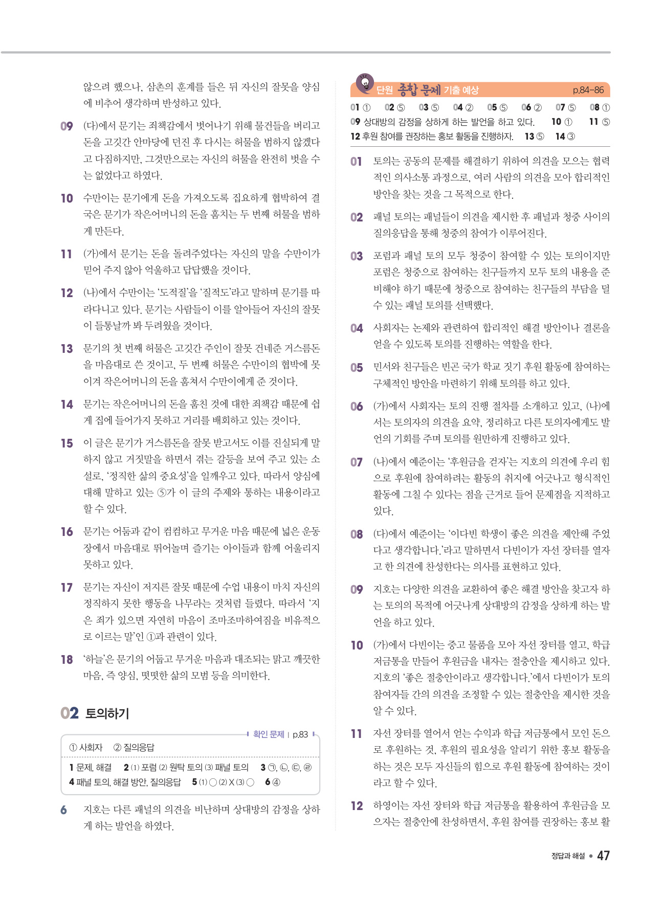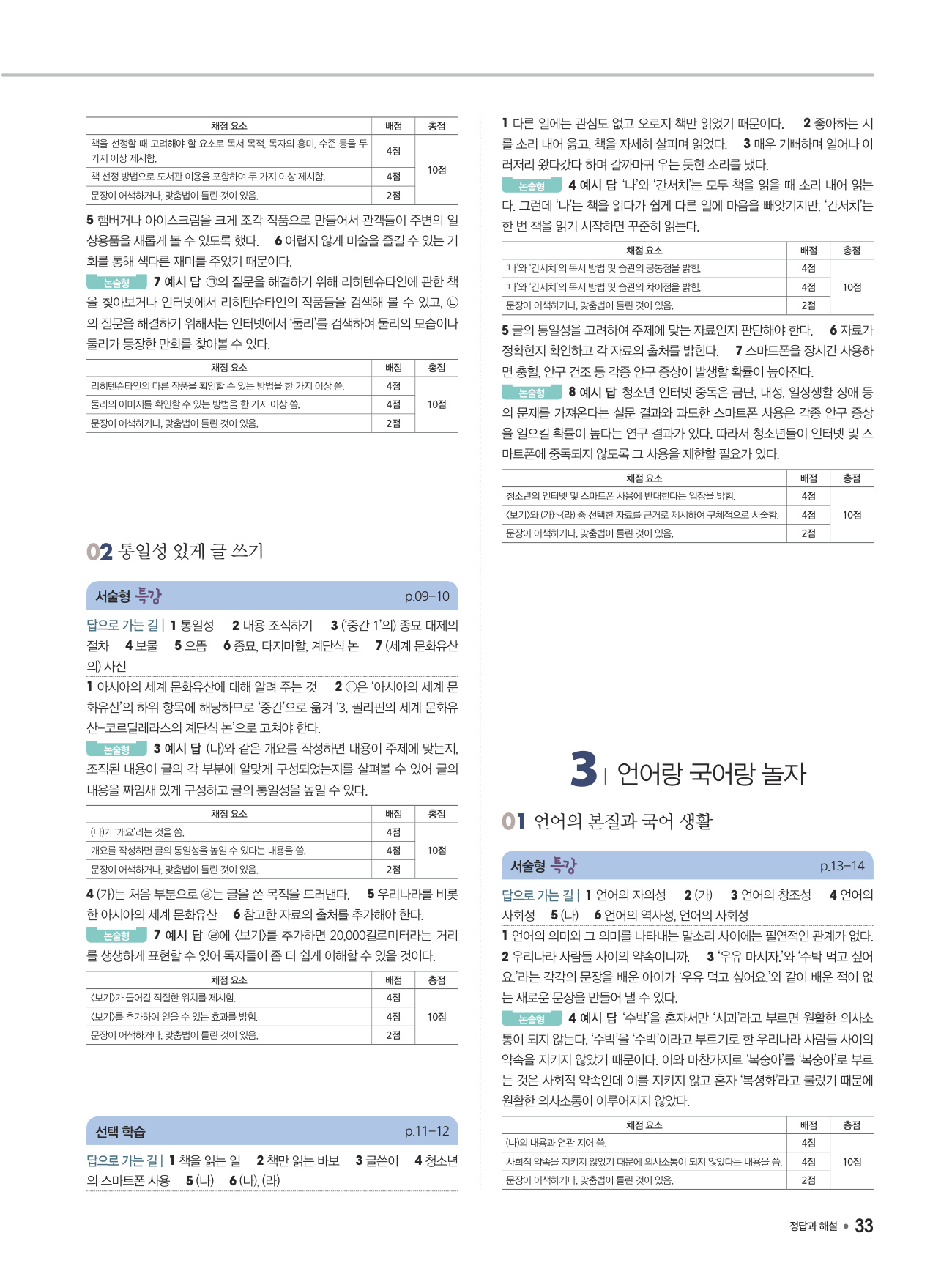 - 교과서 학습 활동과 예시 답안 수록