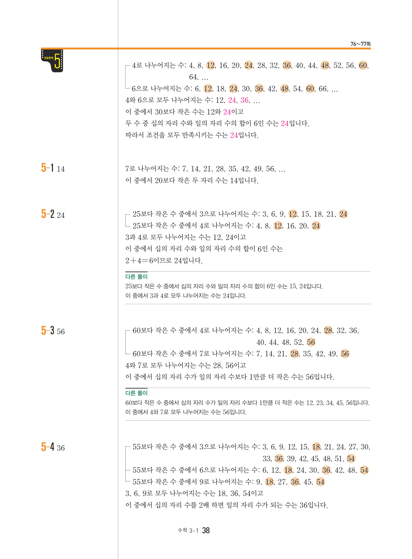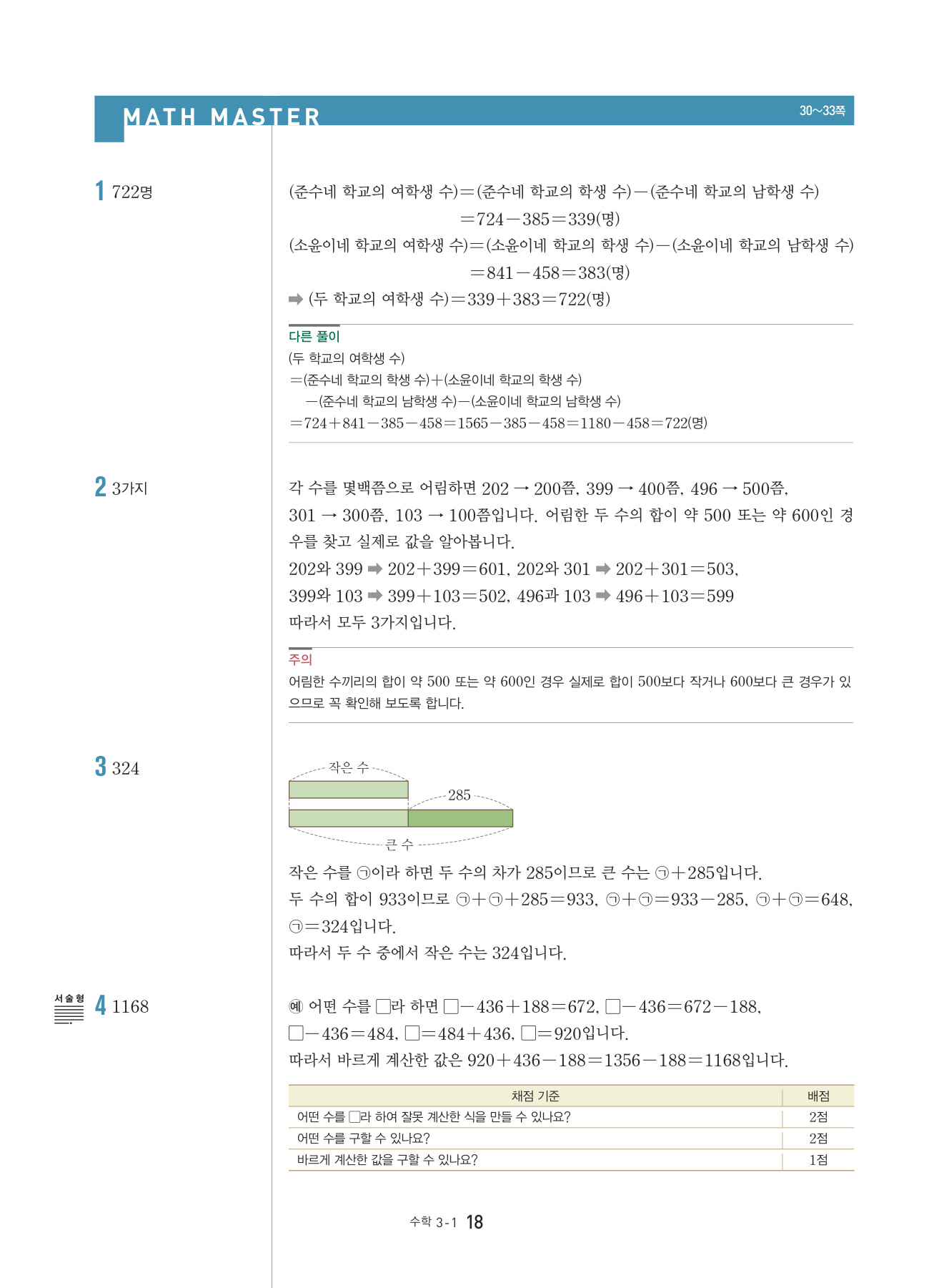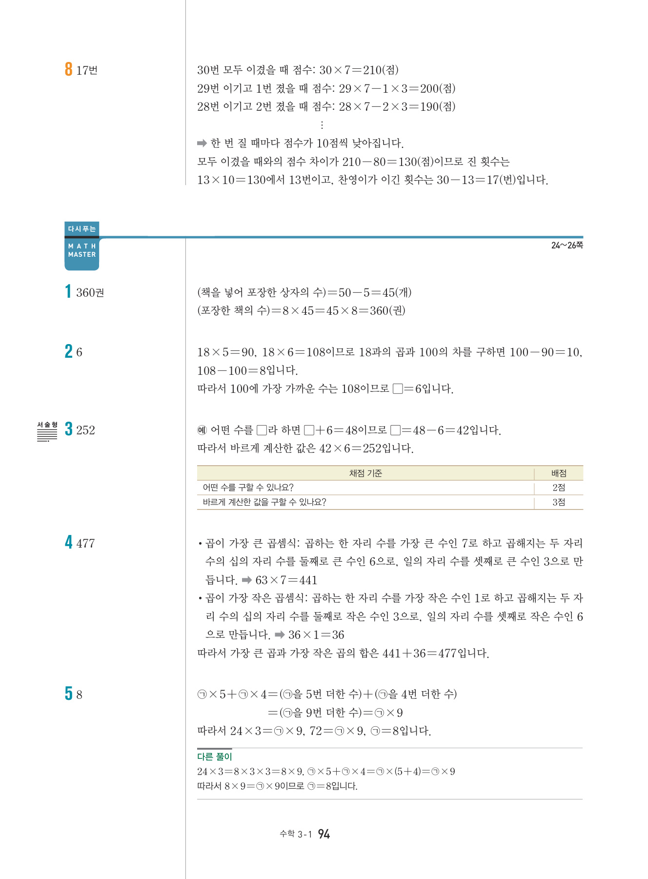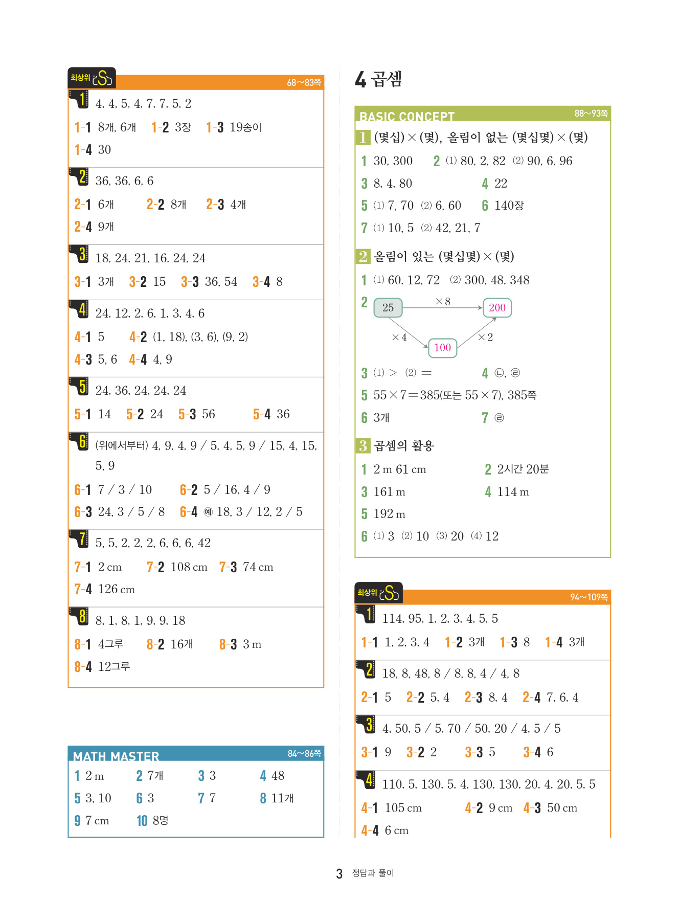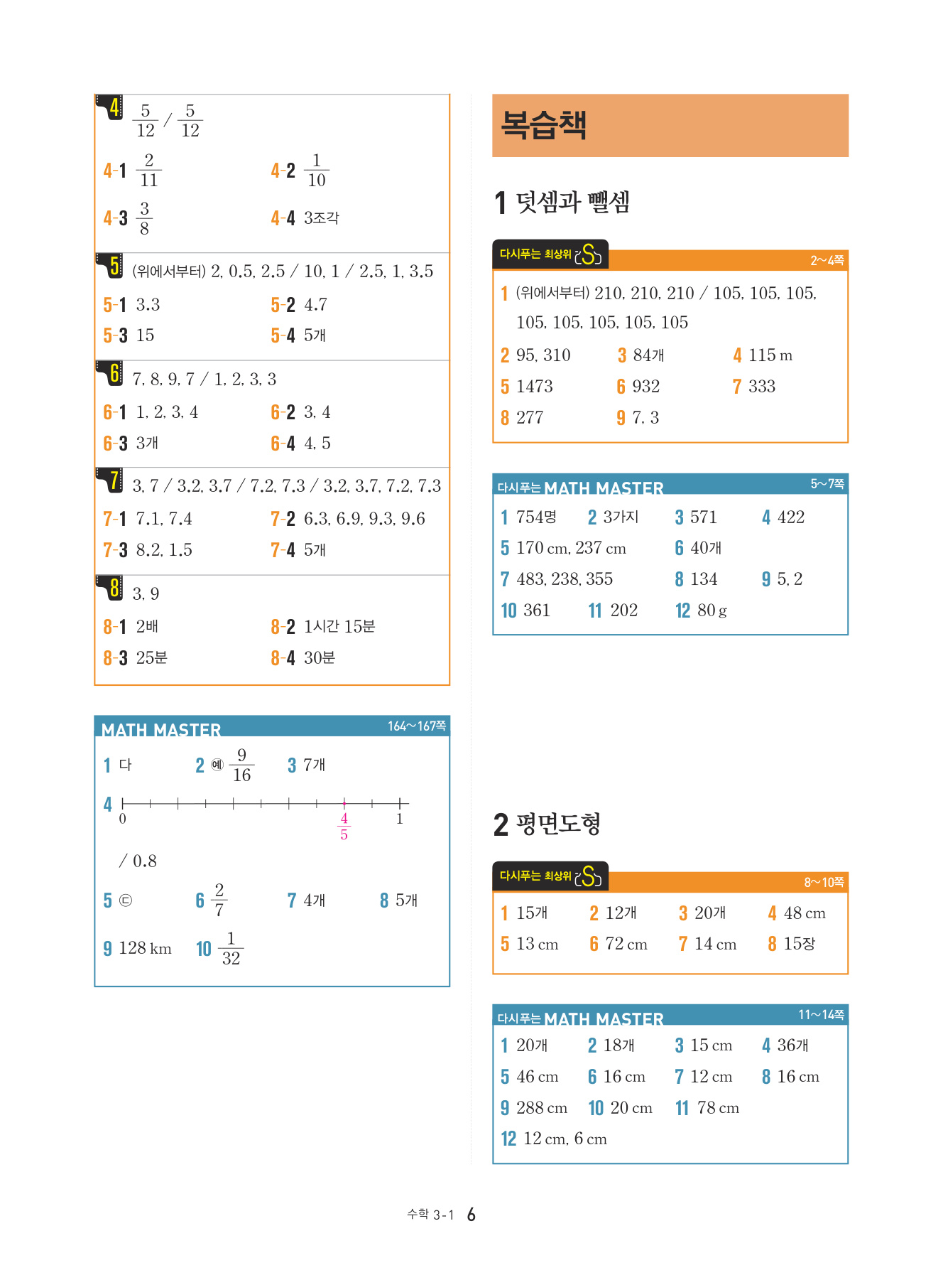 본문의 대표 유형 문제, Math Master의 문제를 모두 1:1로 복습할 수 있도록 구성하였습니다.