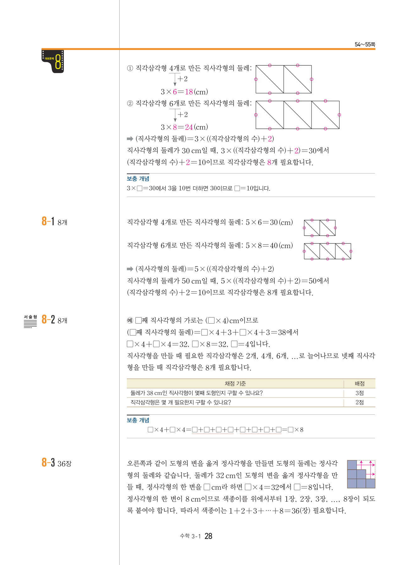 교과서 개념 뿐만 아니라 심화 개념, 이후 학년으로의 연계 개념까지 짚어 보고, 해당 개념에 따른 문제를 풀어 봄으로써 심화학습의 기본기를 갖출 수 있게 하였습니다.