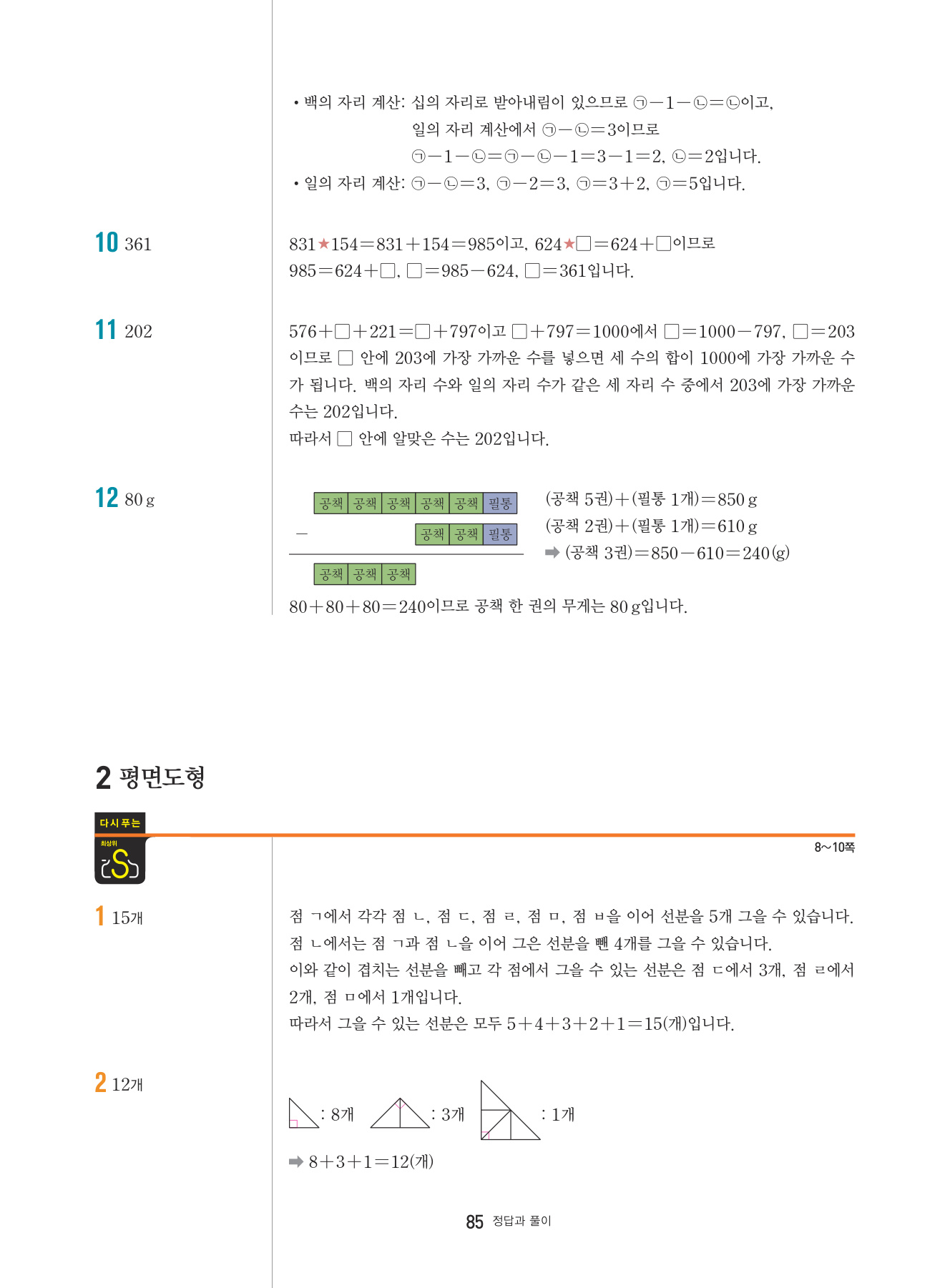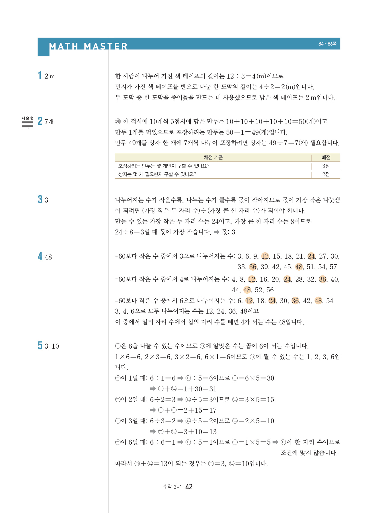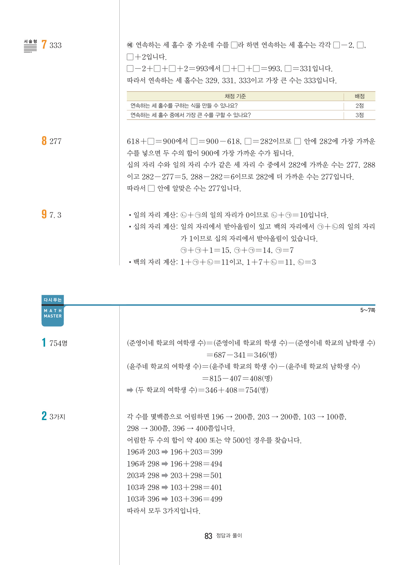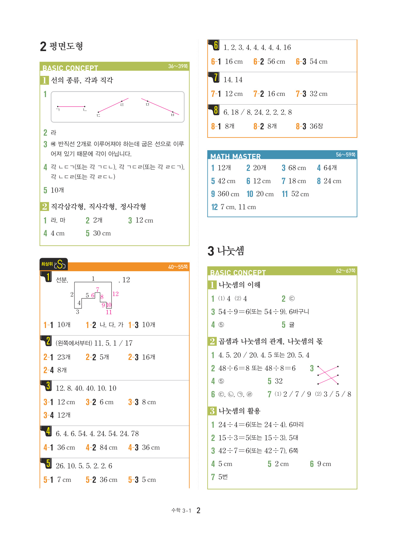 본문의 대표 유형 문제, Math Master의 문제를 모두 1:1로 복습할 수 있도록 구성하였습니다.