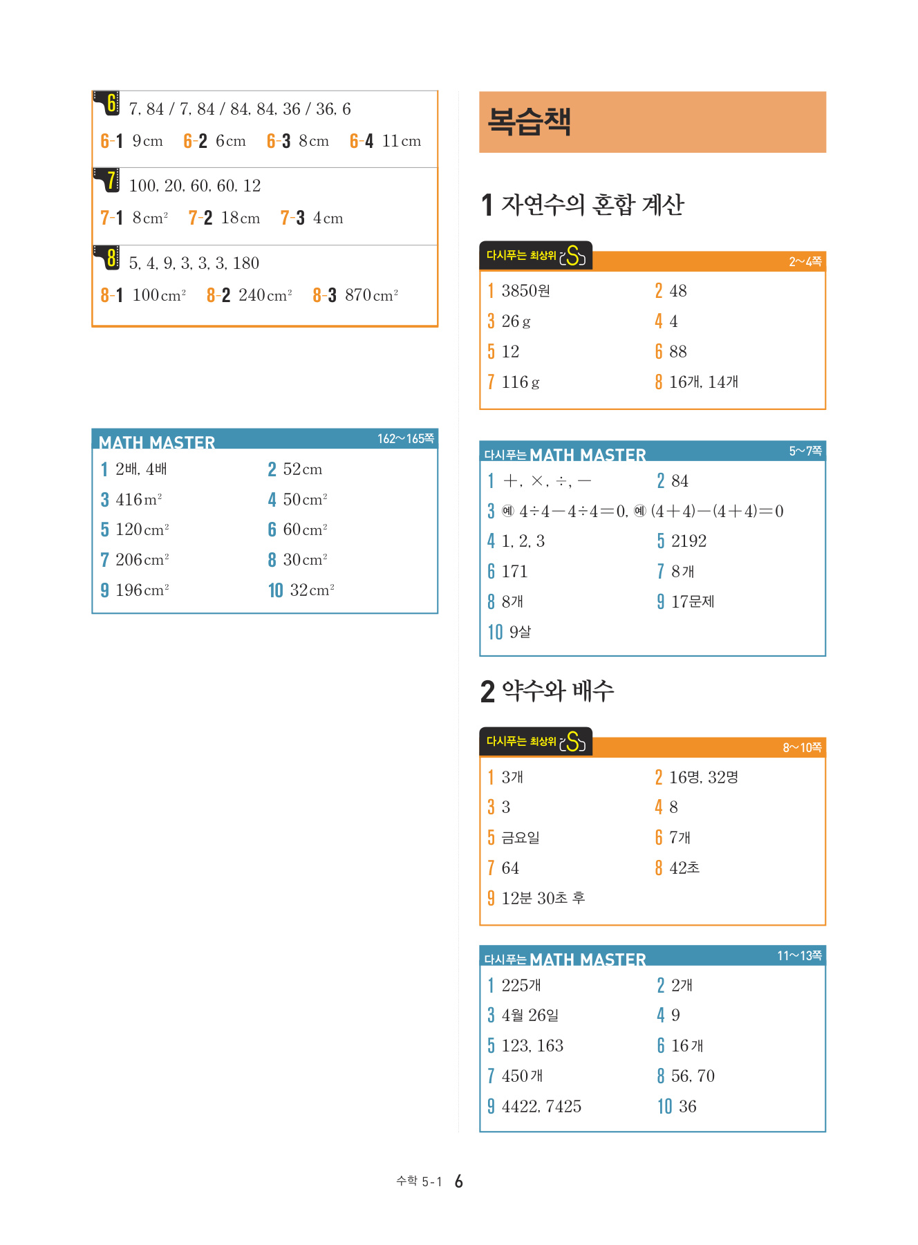 본문의 대표 유형 문제, Math Master의 문제를 모두 1:1로 복습할 수 있도록 구성하였습니다.