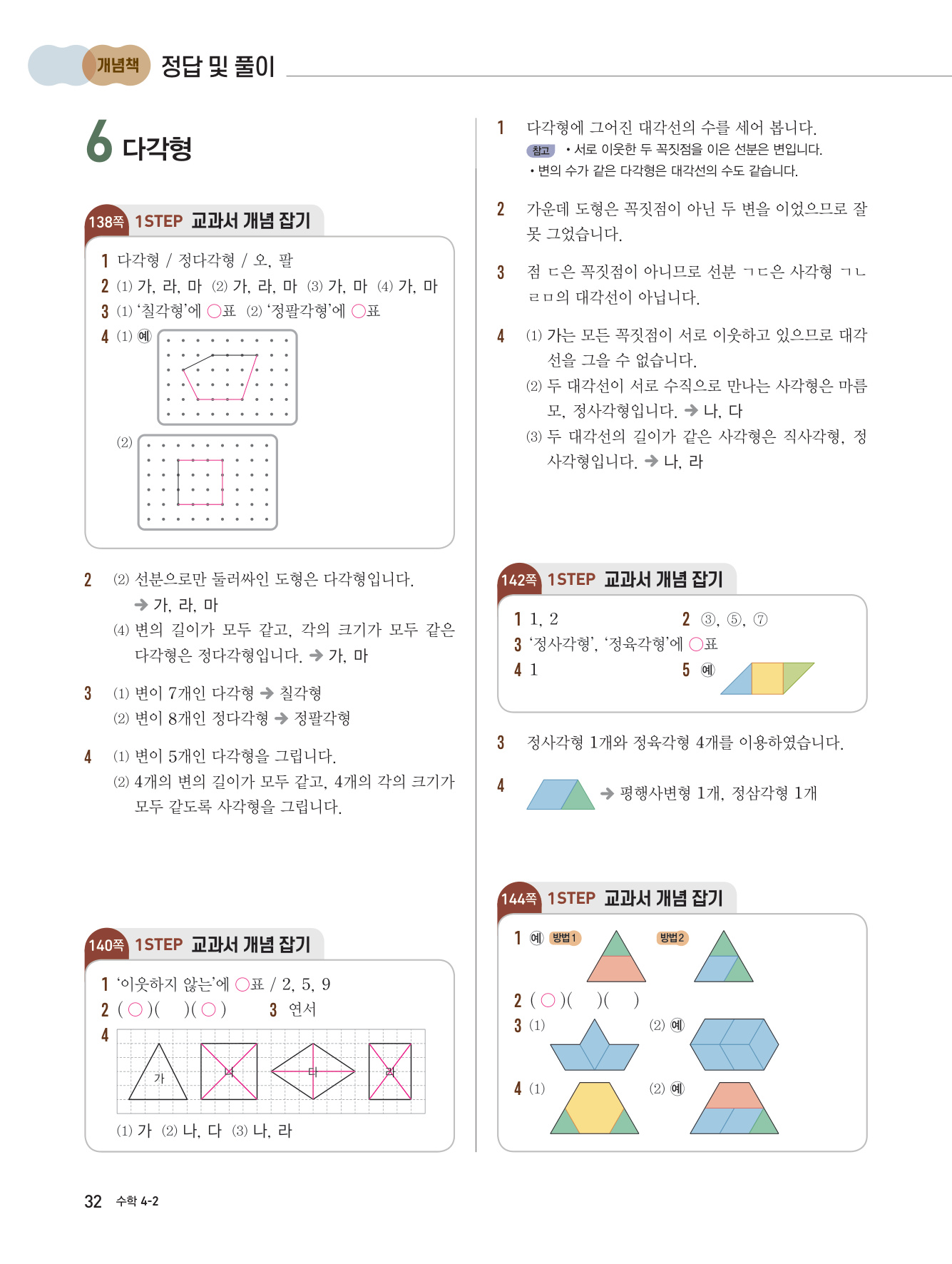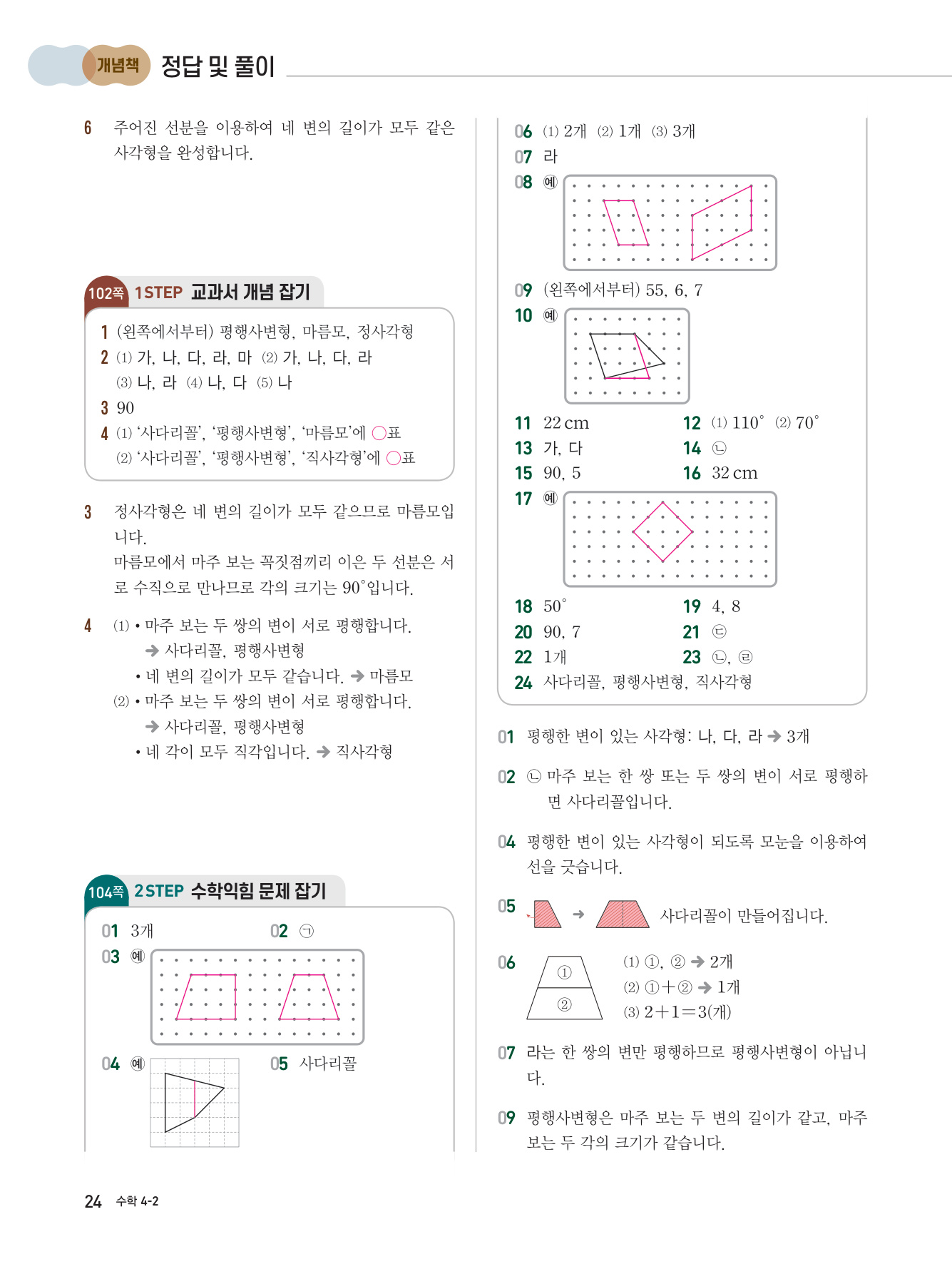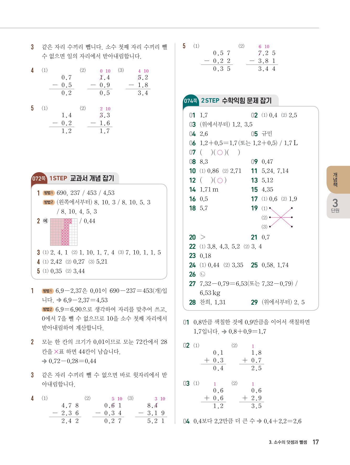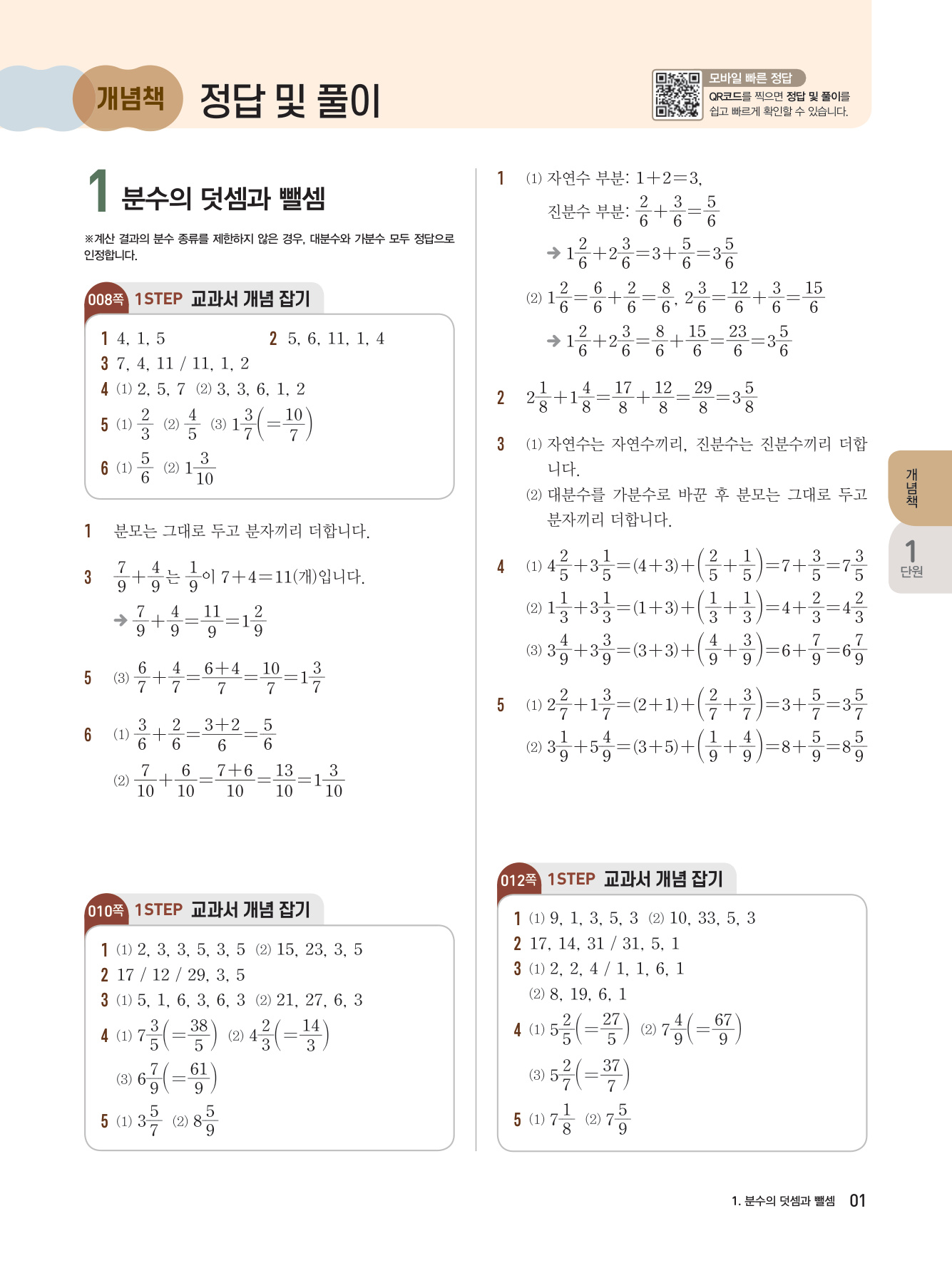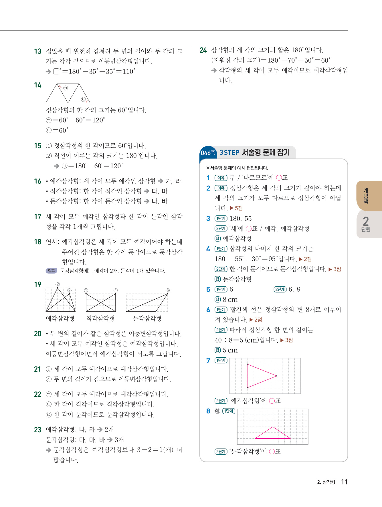 - 개념 확인 문제: 배운 개념의 내용을 같은 형태의 문제로 한 번 더 확인하는 문제 제공