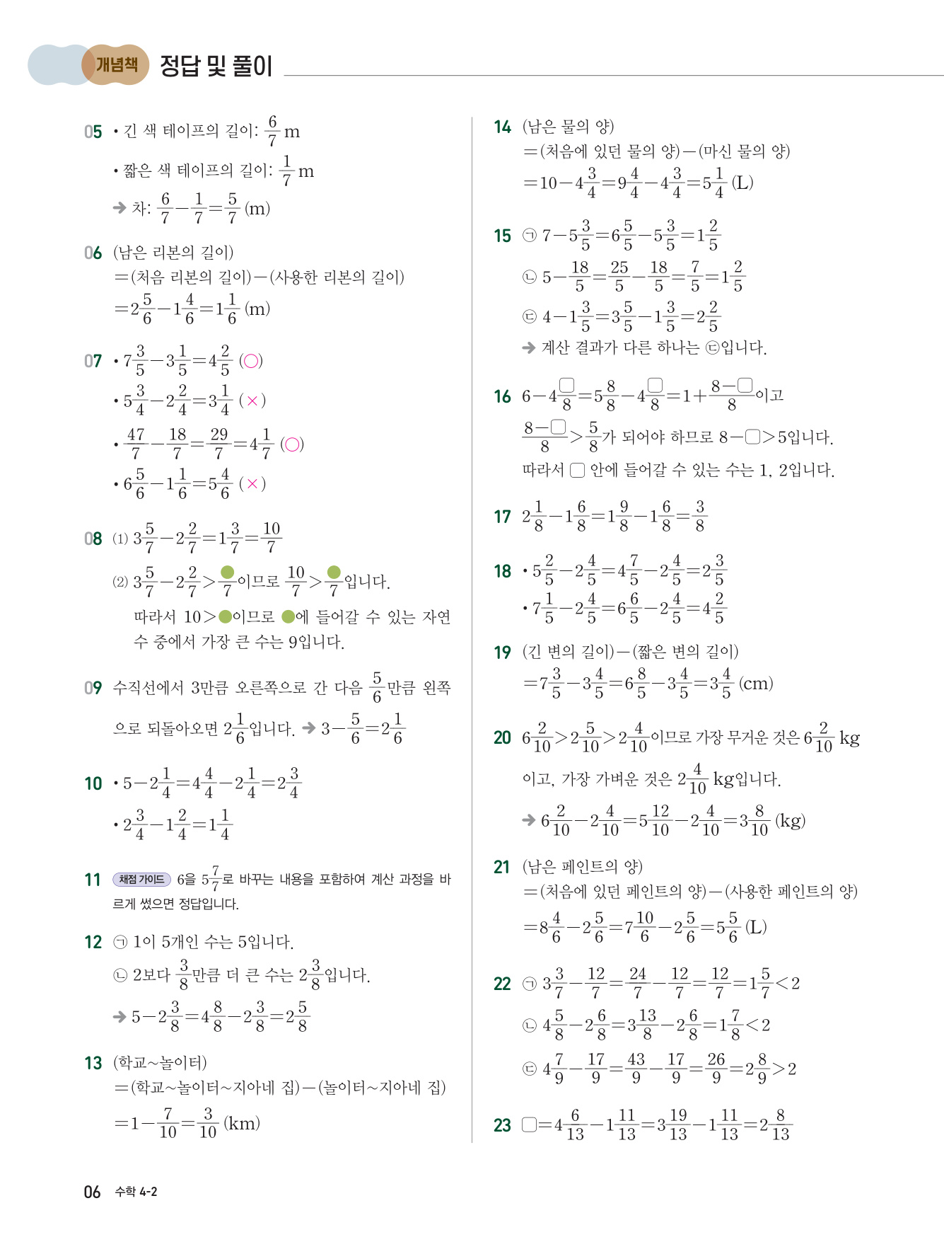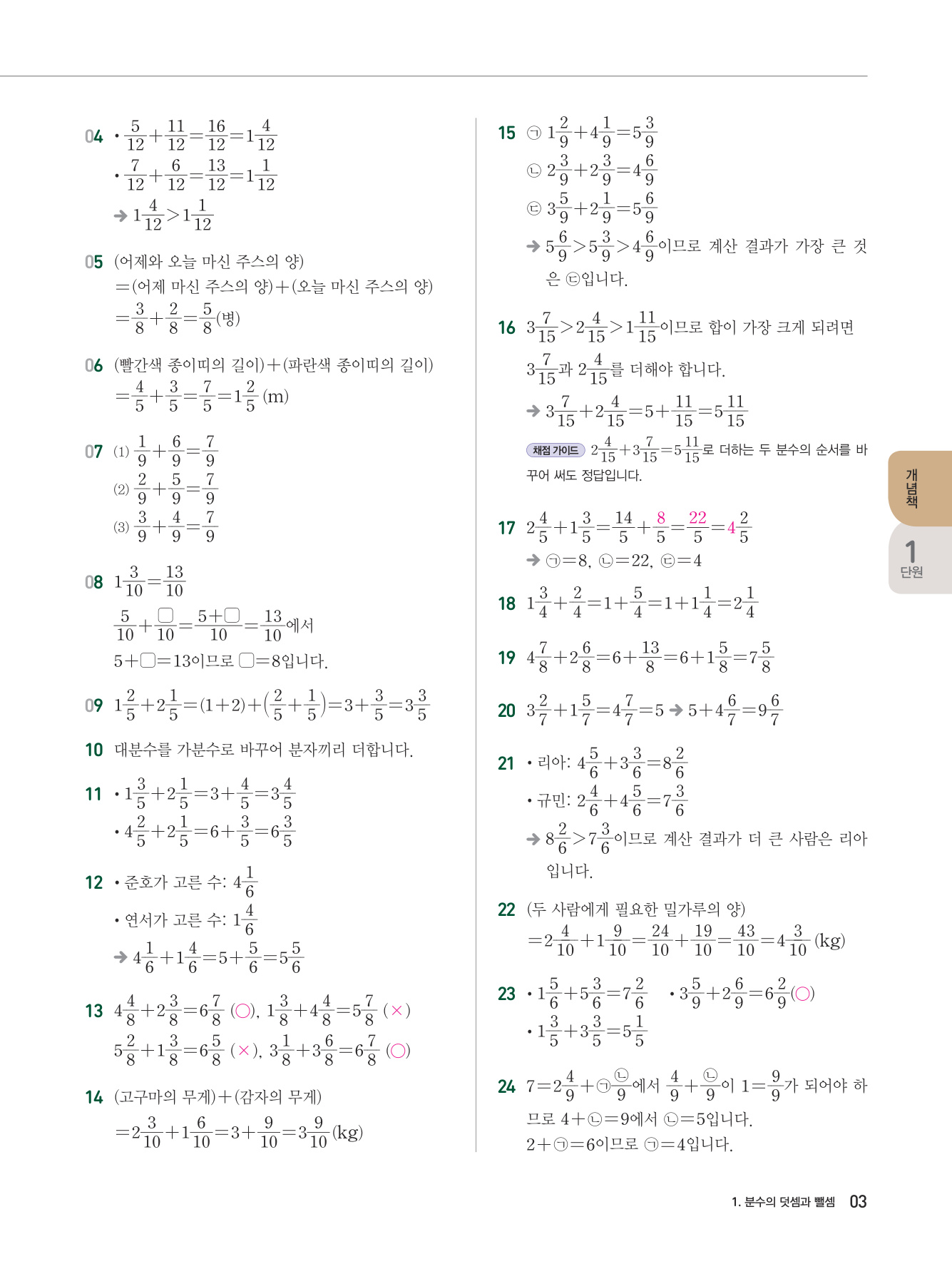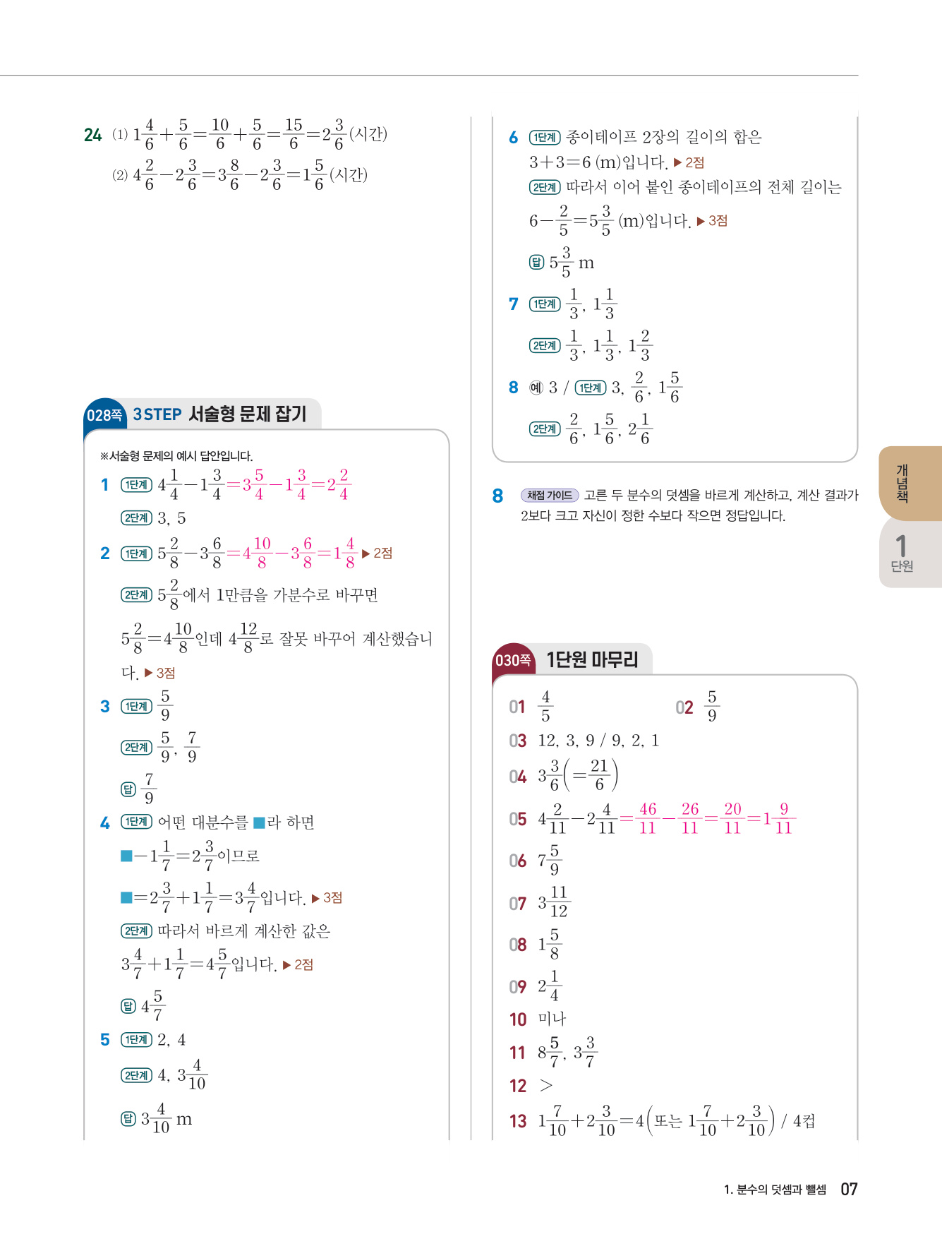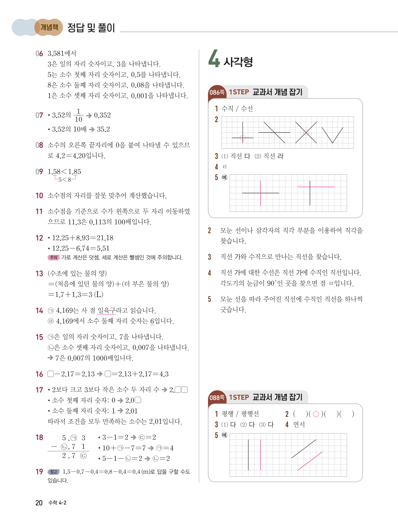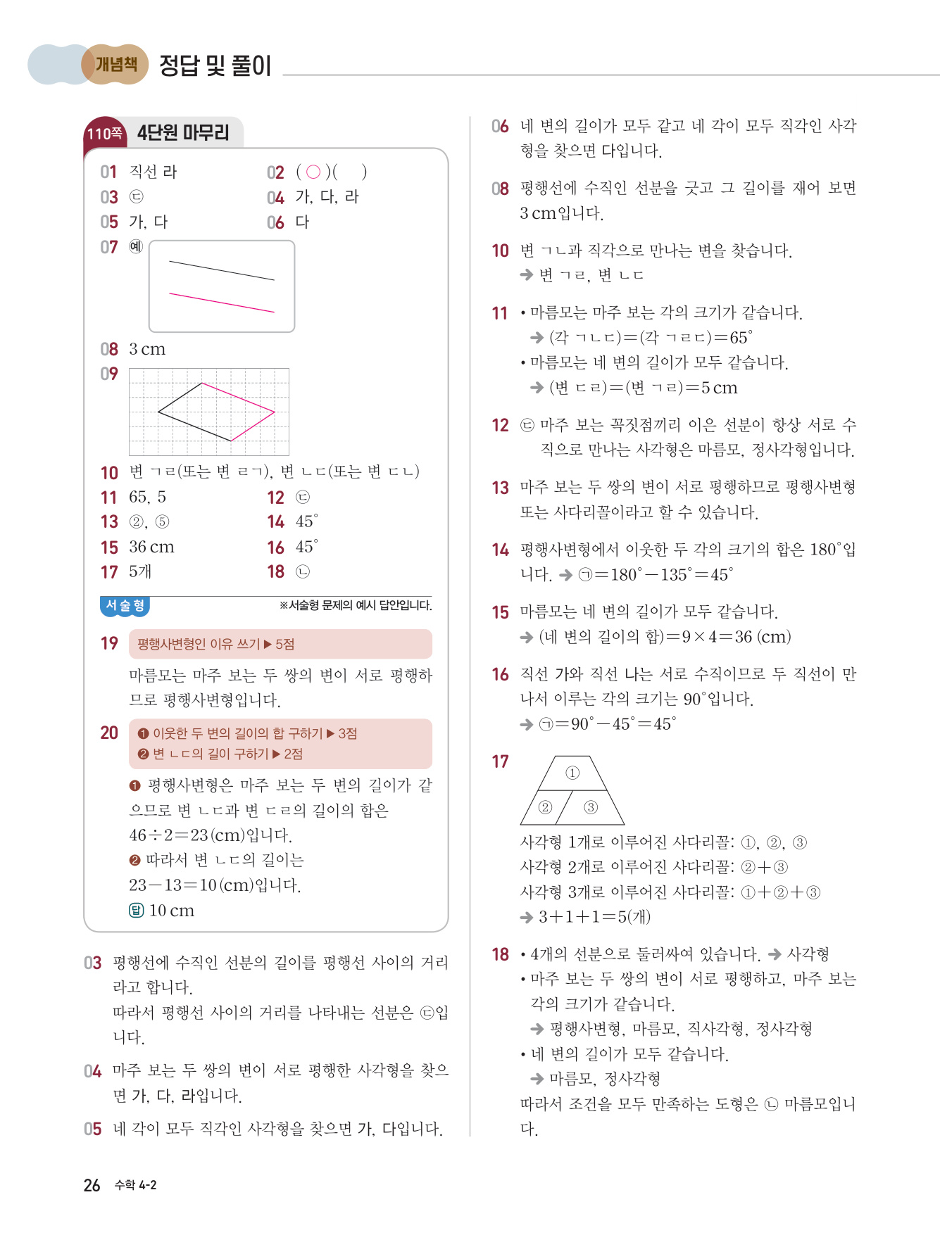 - 개념 확인 문제: 배운 개념의 내용을 같은 형태의 문제로 한 번 더 확인하는 문제 제공