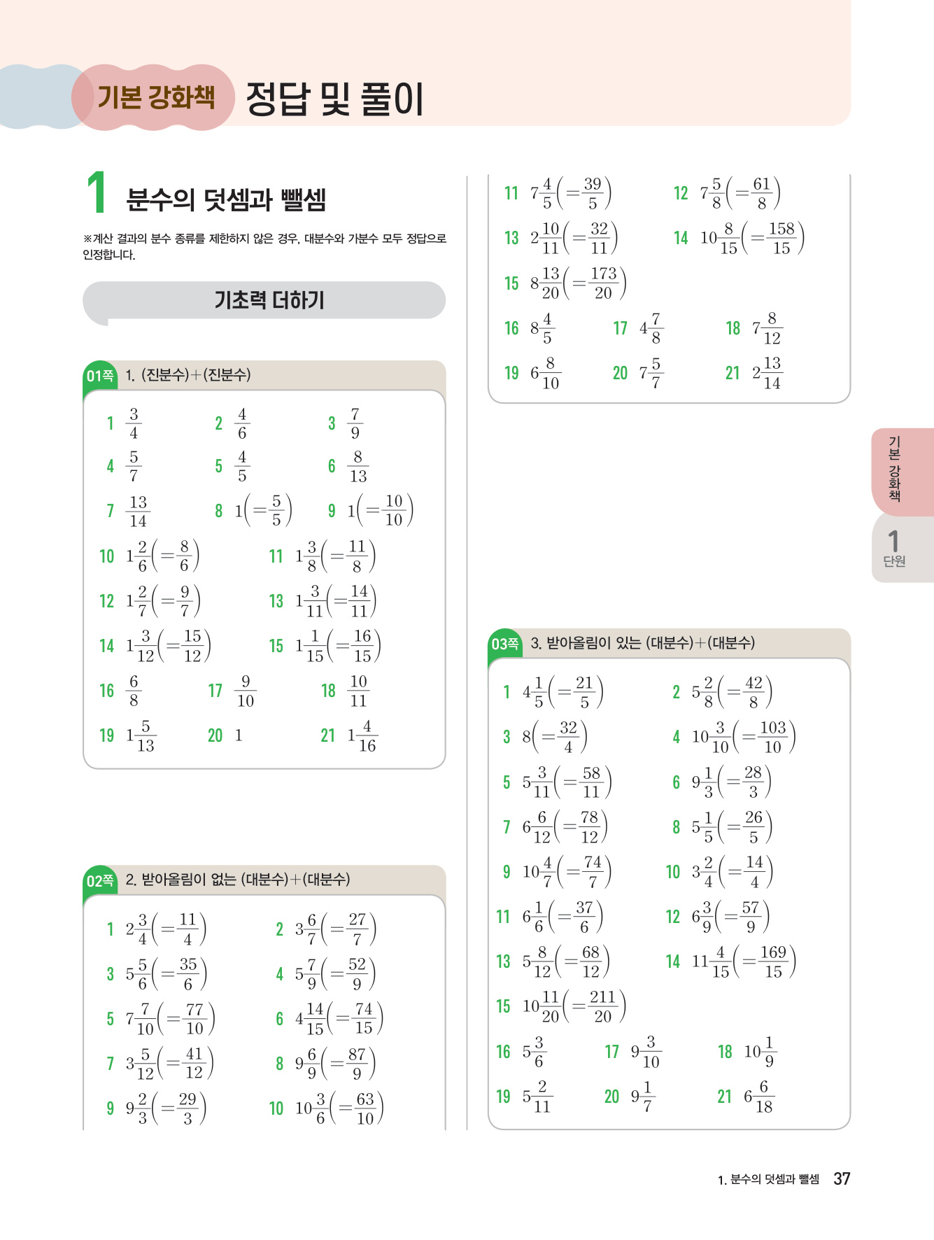 1. 분수의 덧셈과 뺄셈