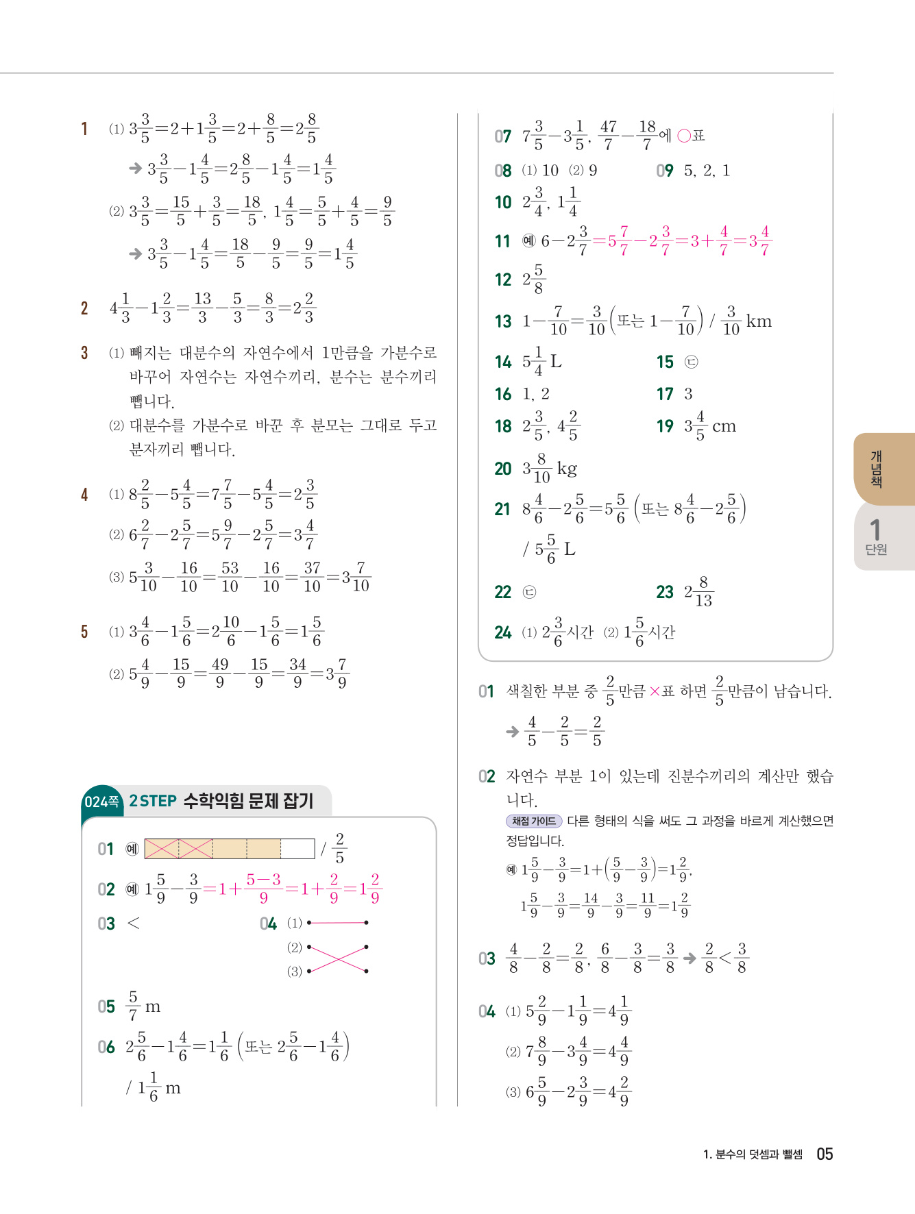 1. 분수의 덧셈과 뺄셈