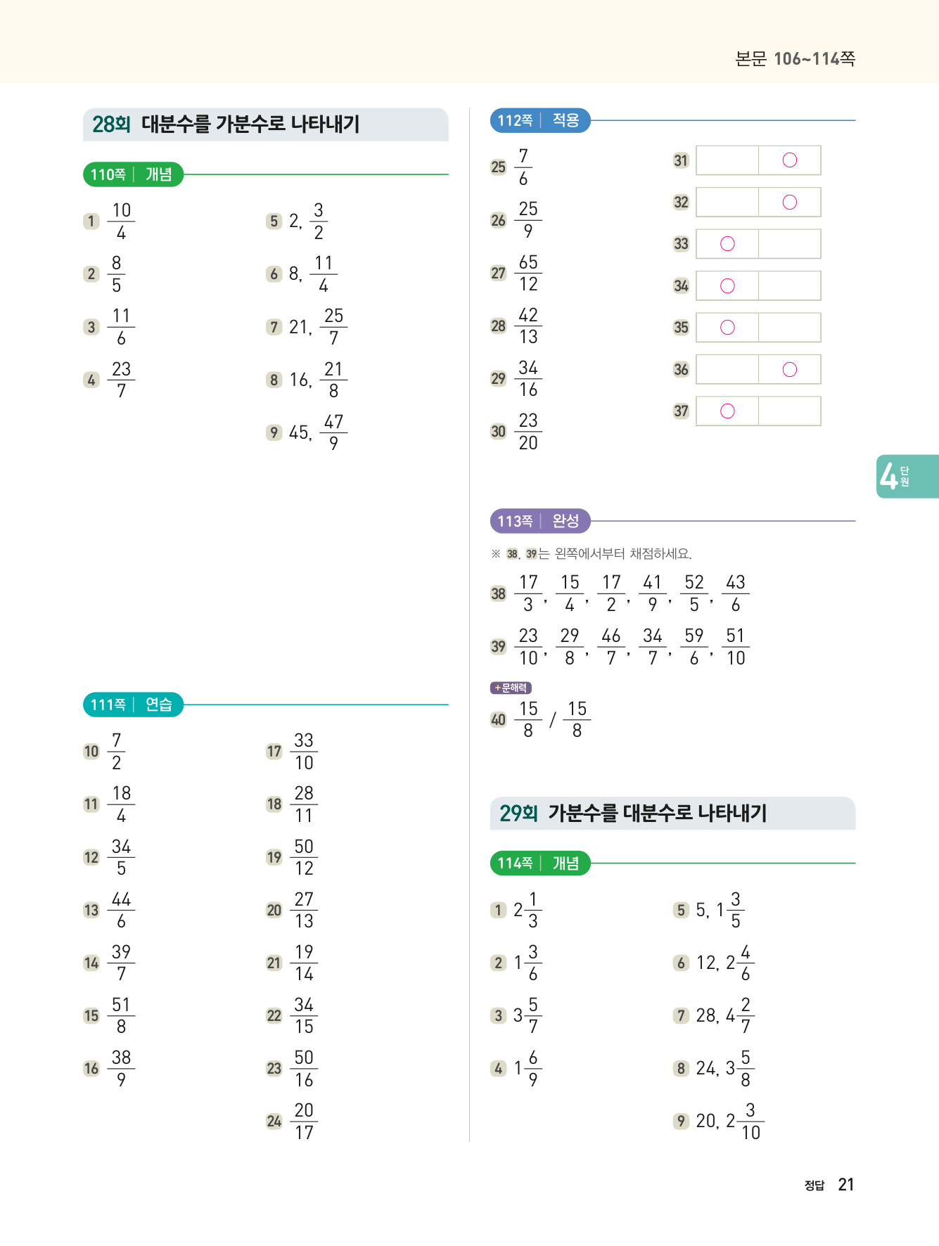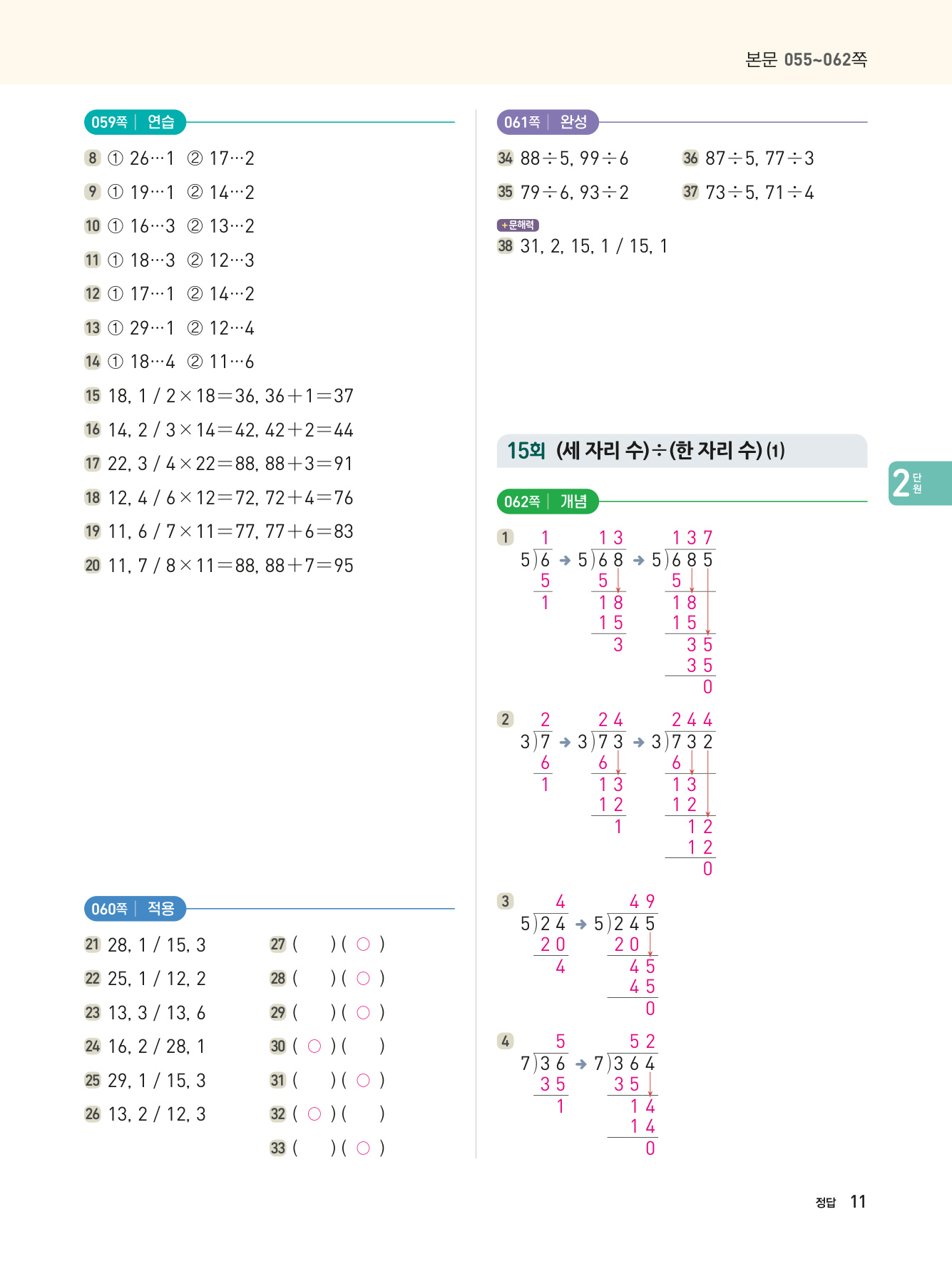 A. [개념] - [연습] - [적용] - [완성] 체계적인 4단계 구성으로 연산 실력을 효과적으로 키울 수있어요.