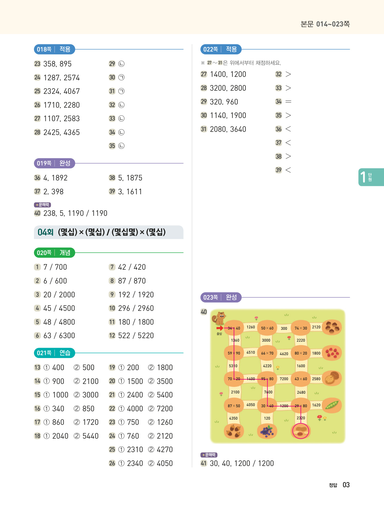 * 전 단원 연산 학습을 수학 교과서의 단원별 개념 순서에 맞게 구성