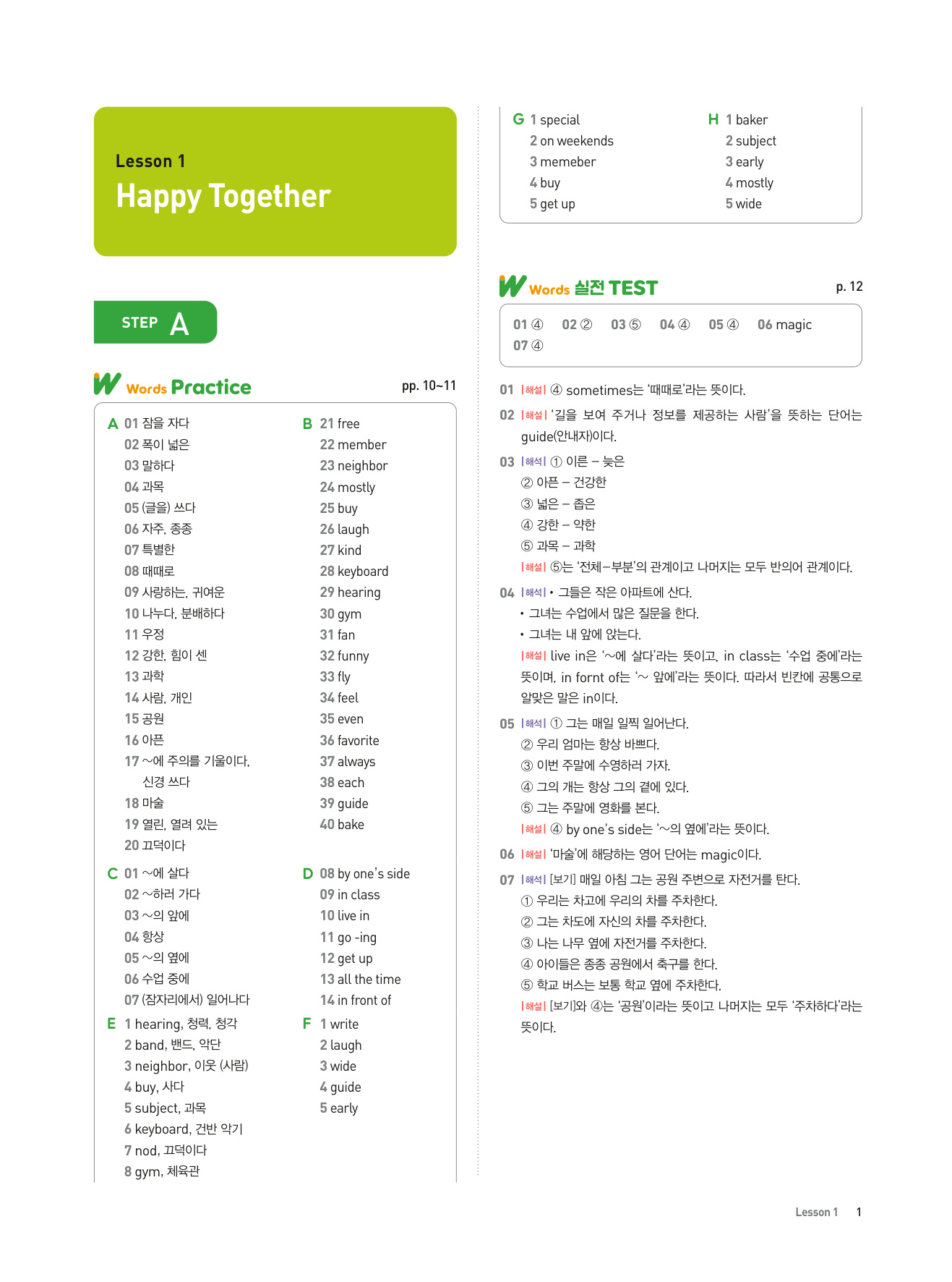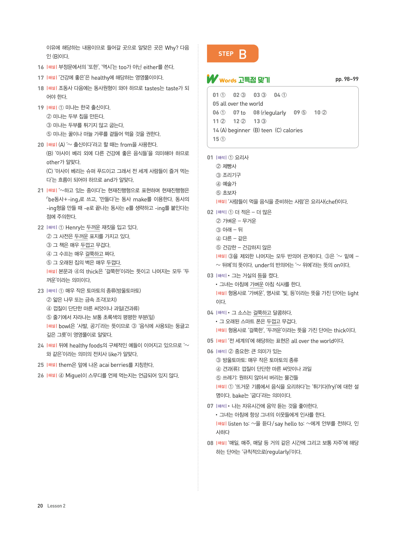 - STEP B: Words / Listening & Speaking / Grammar / Reading / 서술형 100% TEST
