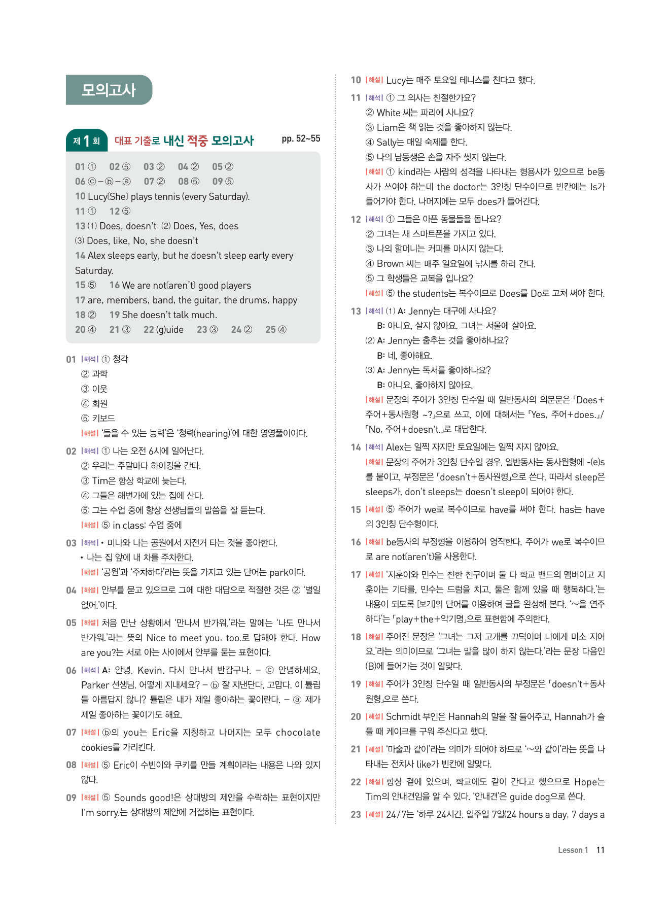 · 내신 적중 모의고사: 학교 시험과 유사한 모의고사로 실전 감각을 익히며 내신에 완벽히 대비합니다.