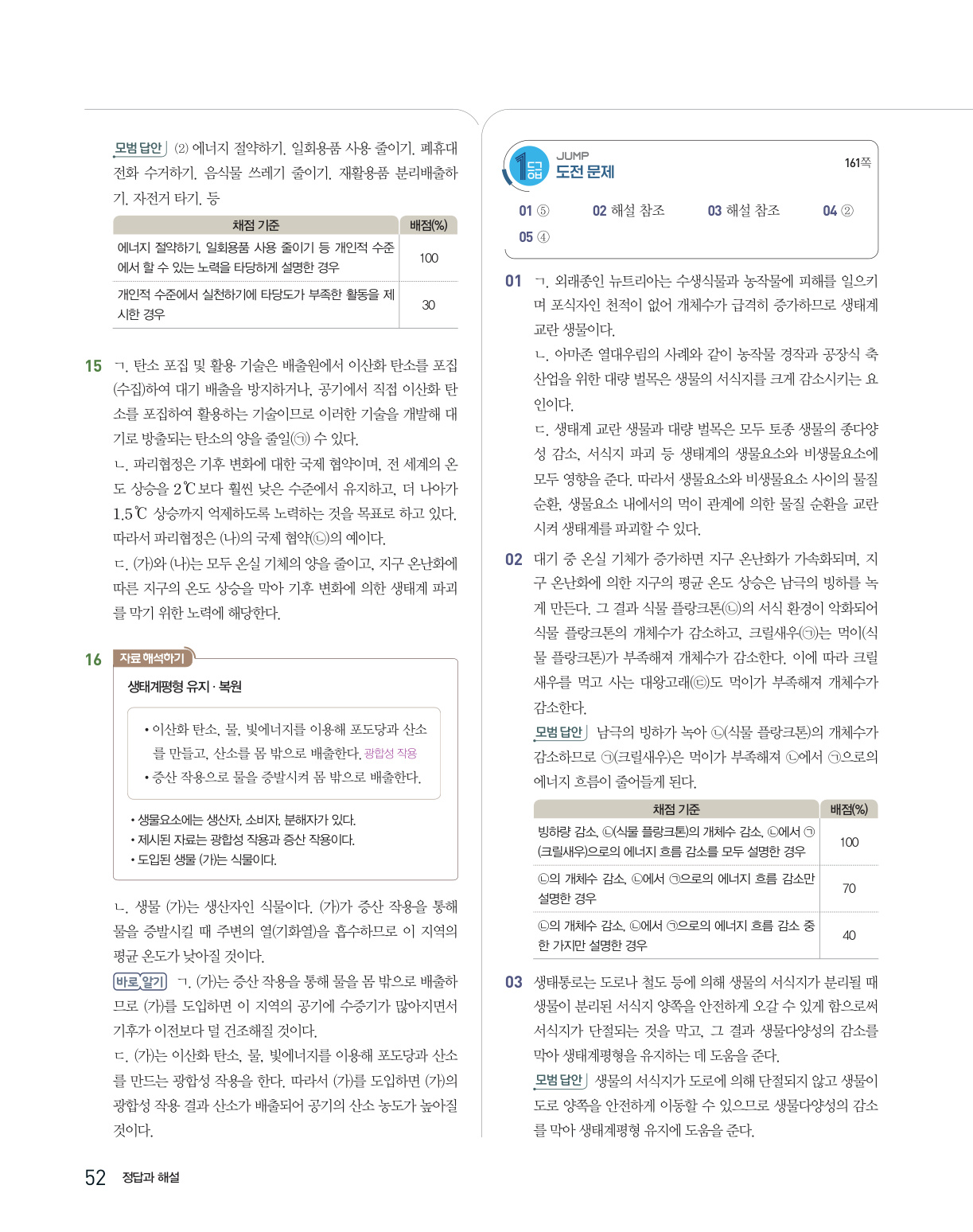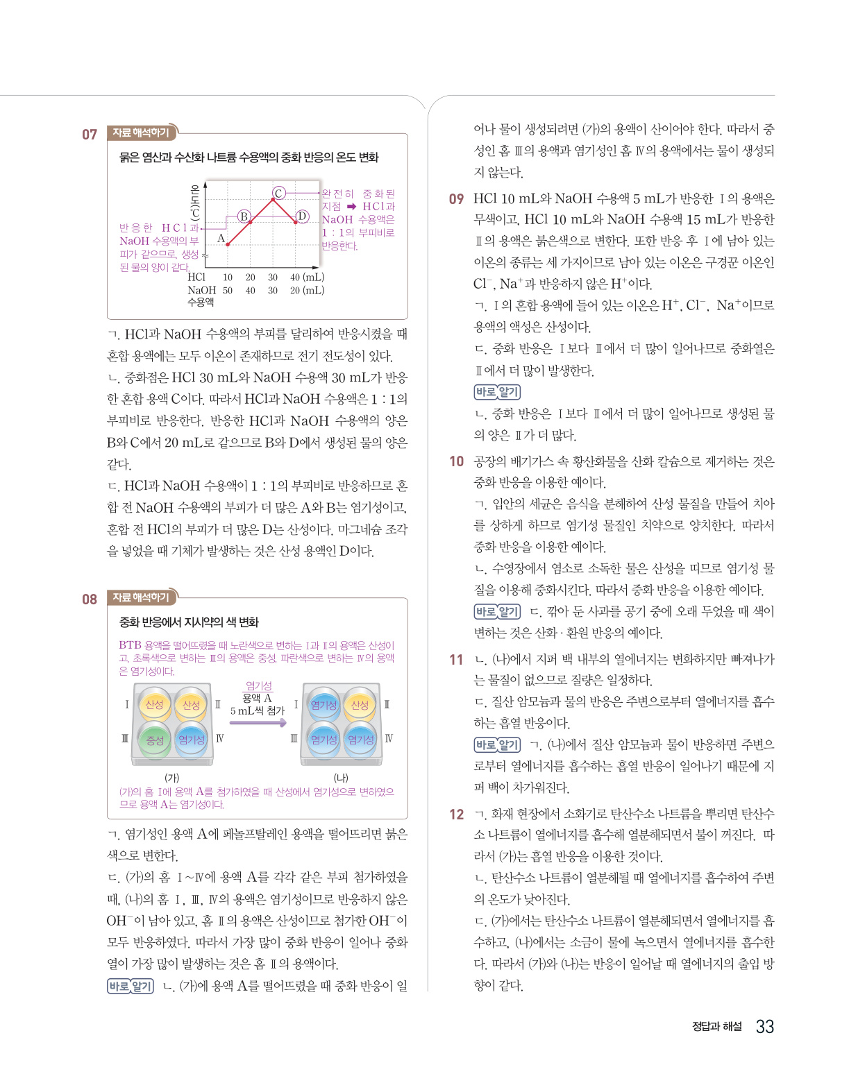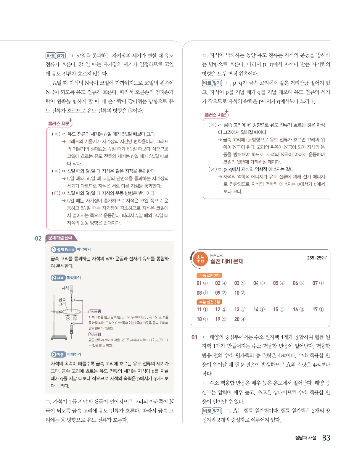 - 탐구 분석 코너에서 교과서에 수록된 필수 탐구의 과정과 결과를 이해하기 쉽도록 탐구 영상을 QR로 제공합니다. 또한 관련 탐구 문항을 단계별로 풍부하게 제공하였습니다.