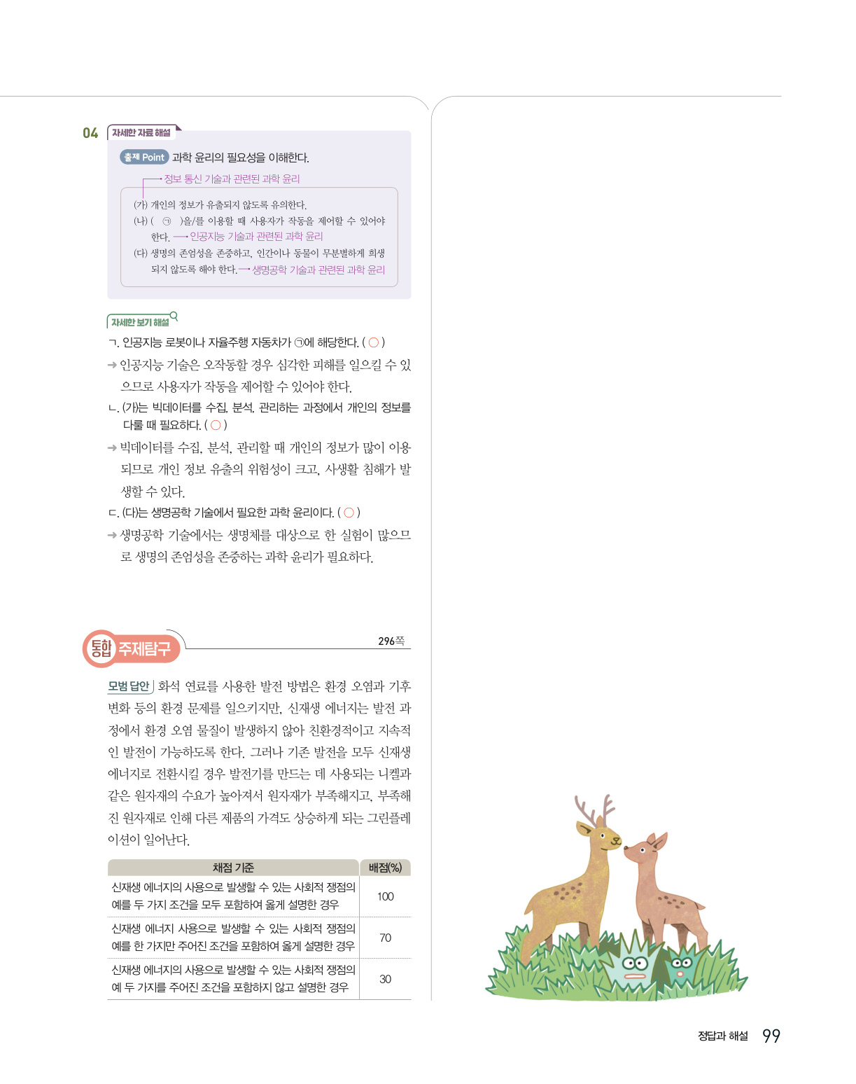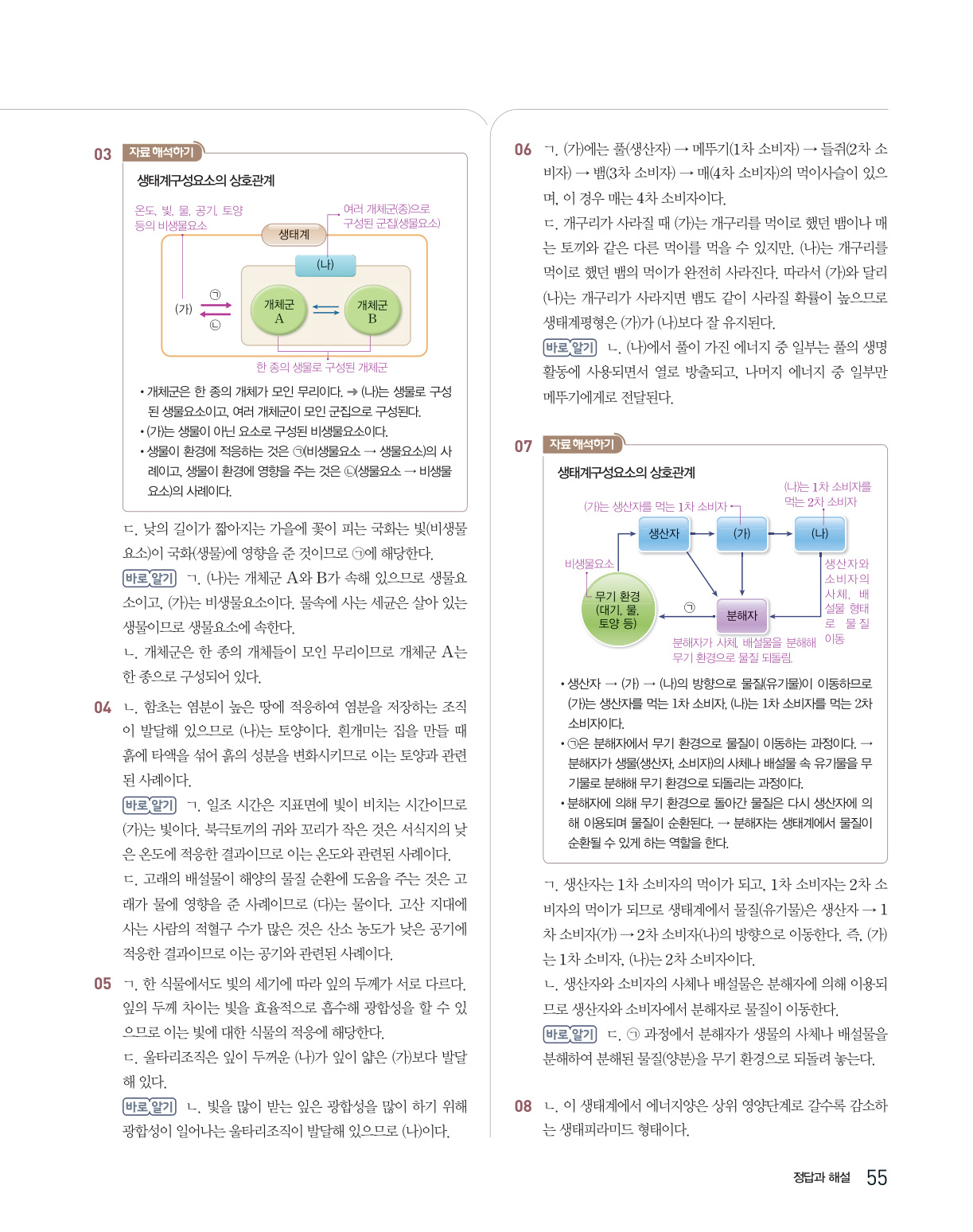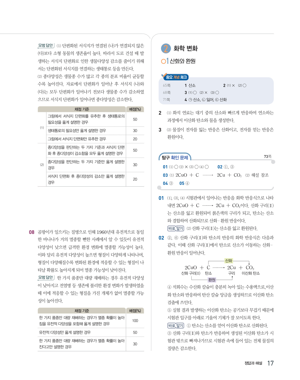 - 탐구 분석 코너에서 교과서에 수록된 필수 탐구의 과정과 결과를 이해하기 쉽도록 탐구 영상을 QR로 제공합니다. 또한 관련 탐구 문항을 단계별로 풍부하게 제공하였습니다.