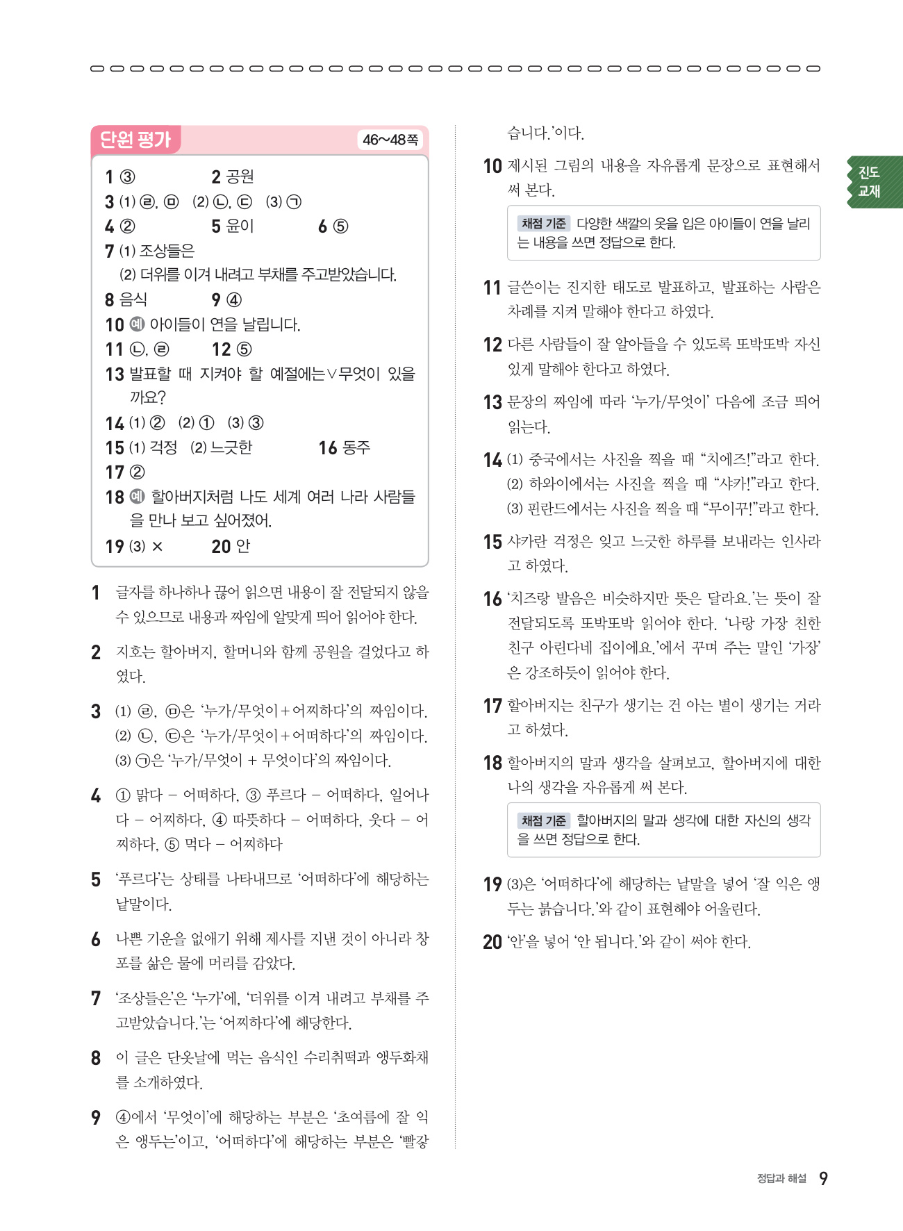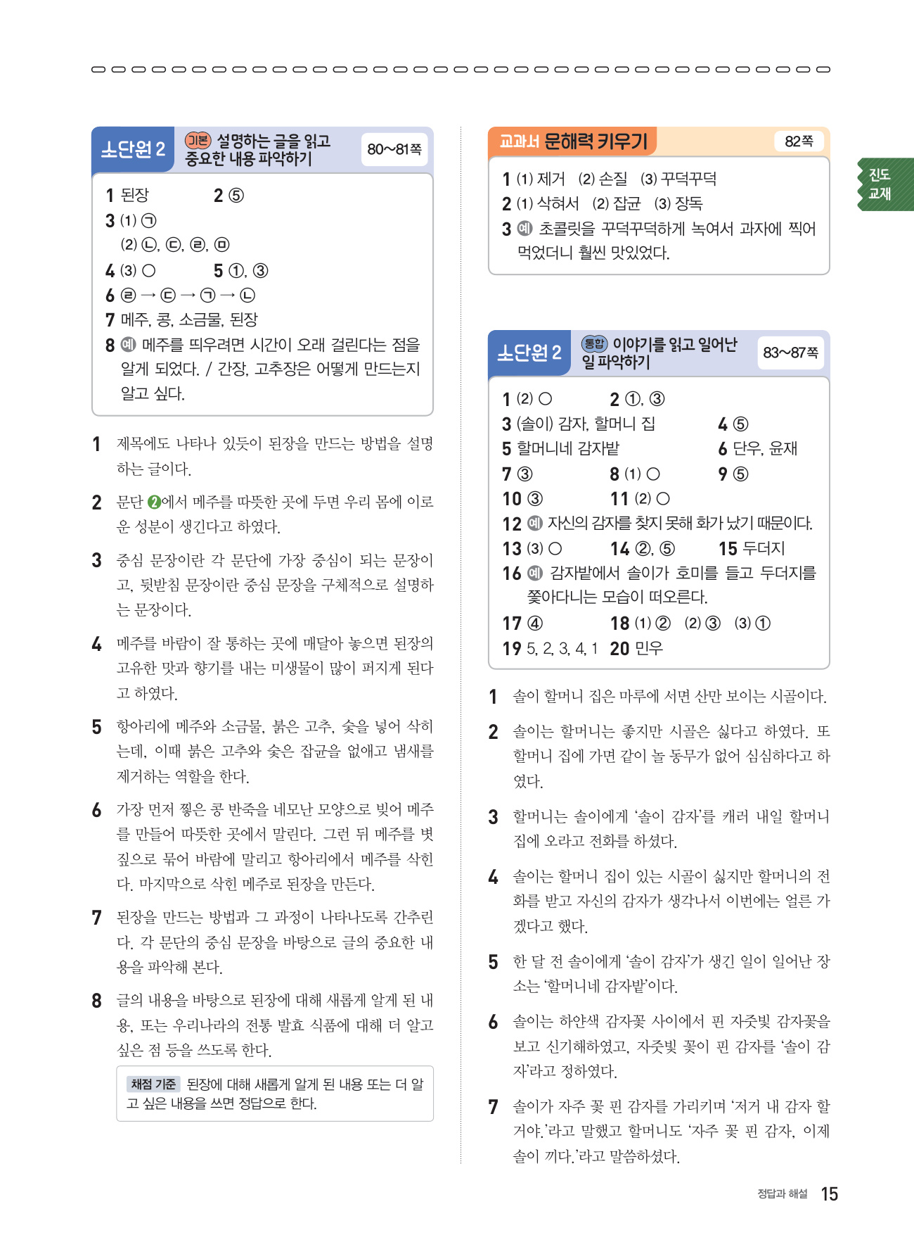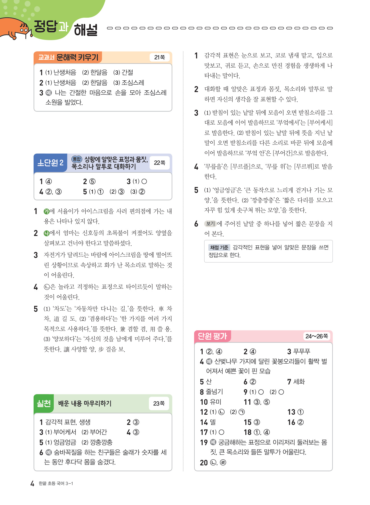 『한끝 초등 국어』는 교과서 개념, 문해력 향상, 평가 대비까지 한 권으로 완성하는 국어 학습서입니다. 교과서 핵심 개념을 일목요연하게 정리하여 개념을 쉽고 정확하게 이해할 수 있도록 하였습니다. 또한 교과서 지문을 완벽하게 분석하여 내용 이해는 물론, 다양한 유형의 문제로 생각하는 힘을 기를 수 있도록 하였습니다. 더하여 교과서에 나오는 주요 단어의 뜻풀이와 보충 설명, 관련 문제를 제공하여 문해력을 향상할 수 있게 하였습니다. 탄탄한 학습 뒤에는 단원 평가를 풀어 보며 자신의 실력을 점검할 수 있습니다.