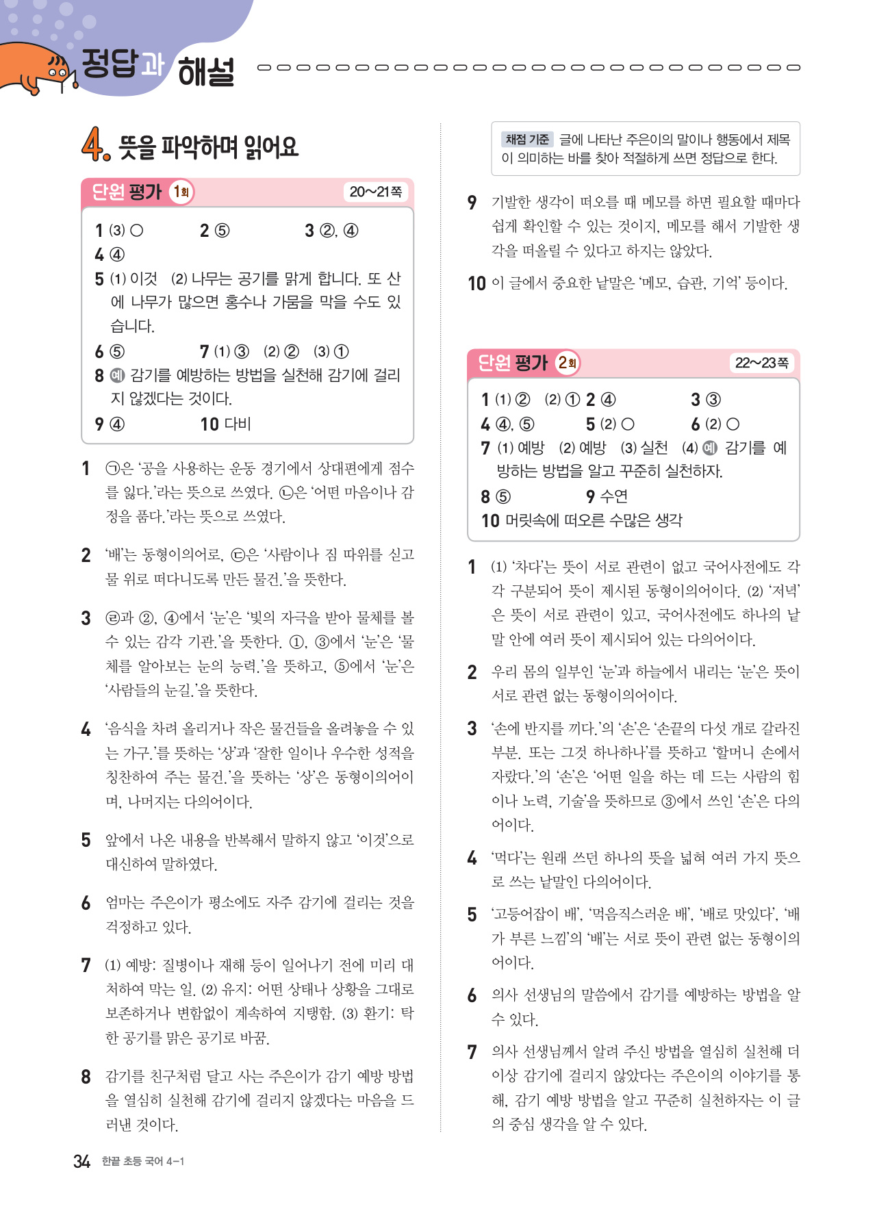 『한끝 초등 국어』는 교과서 개념, 문해력 향상, 평가 대비까지 한 권으로 완성하는 국어 학습서입니다. 교과서 핵심 개념을 일목요연하게 정리하여 개념을 쉽고 정확하게 이해할 수 있도록 하였습니다. 또한 교과서 지문을 완벽하게 분석하여 내용 이해는 물론, 다양한 유형의 문제로 생각하는 힘을 기를 수 있도록 하였습니다. 더하여 교과서에 나오는 주요 단어의 뜻풀이와 보충 설명, 관련 문제를 제공하여 문해력을 향상할 수 있게 하였습니다. 탄탄한 학습 뒤에는 단원 평가를 풀어 보며 자신의 실력을 점검할 수 있습니다.