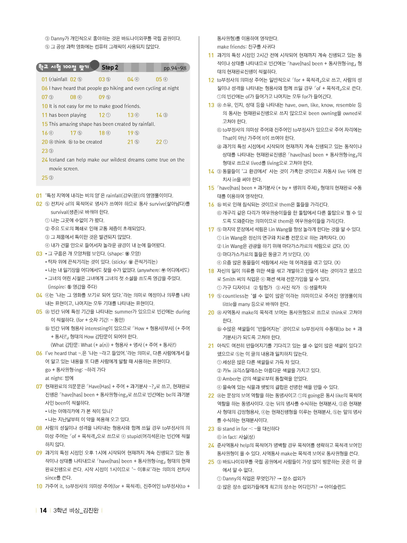 3. 교과서 속 핵심 문법 / 교과서 문법 다지기 Step 1, 2 / 서술형