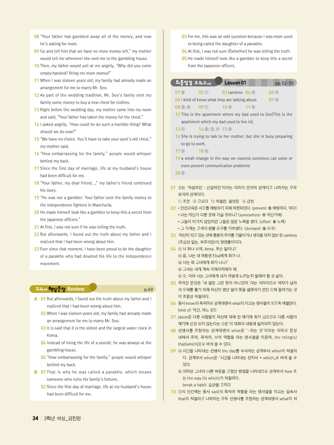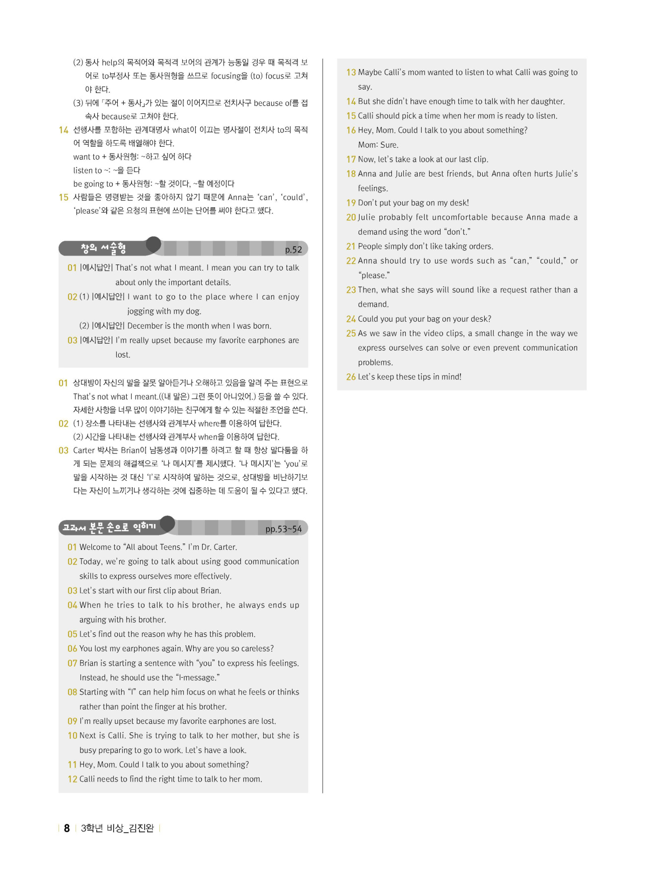 - 시험에 나올 만한 교과서 핵심 문장 복습 코너 수록