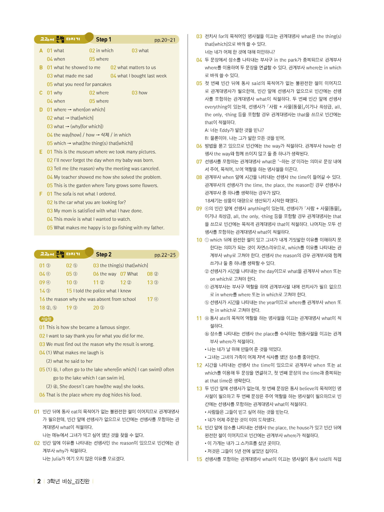 - 교과서 문법 다지기 : STEP 1 & 2 & 서술형