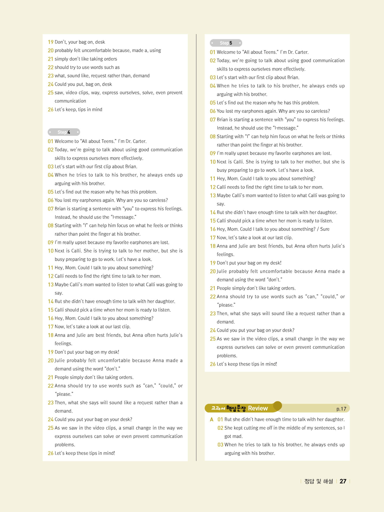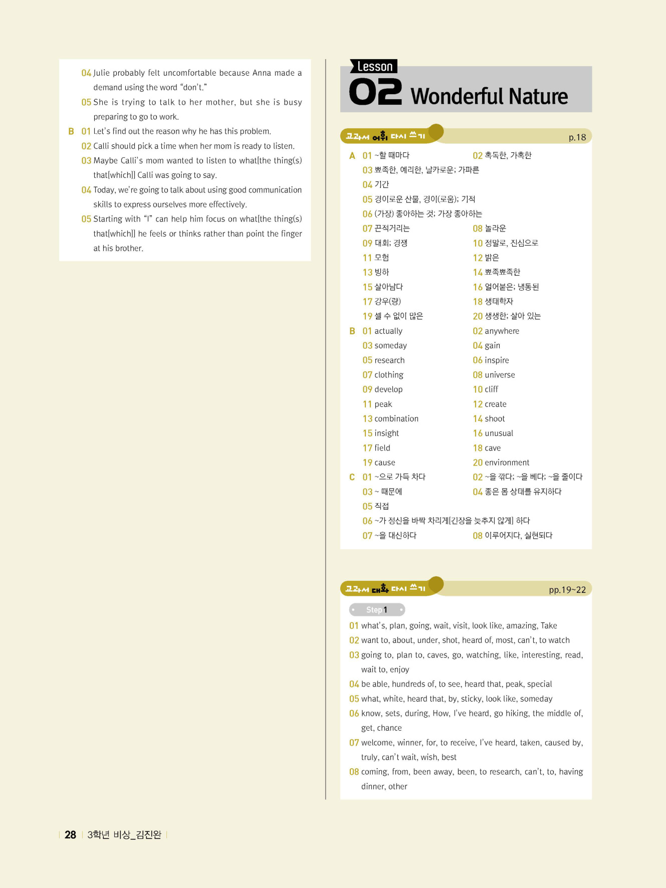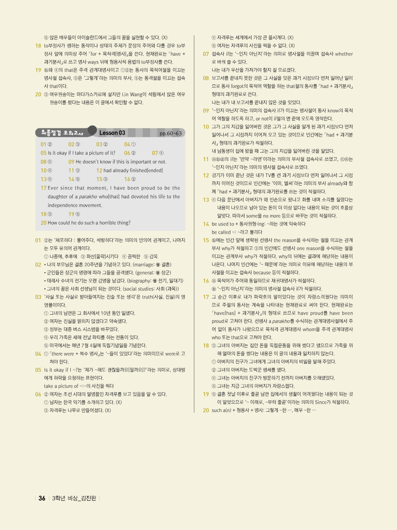 - 시험에 나올 만한 교과서 핵심 문장 복습 코너 수록