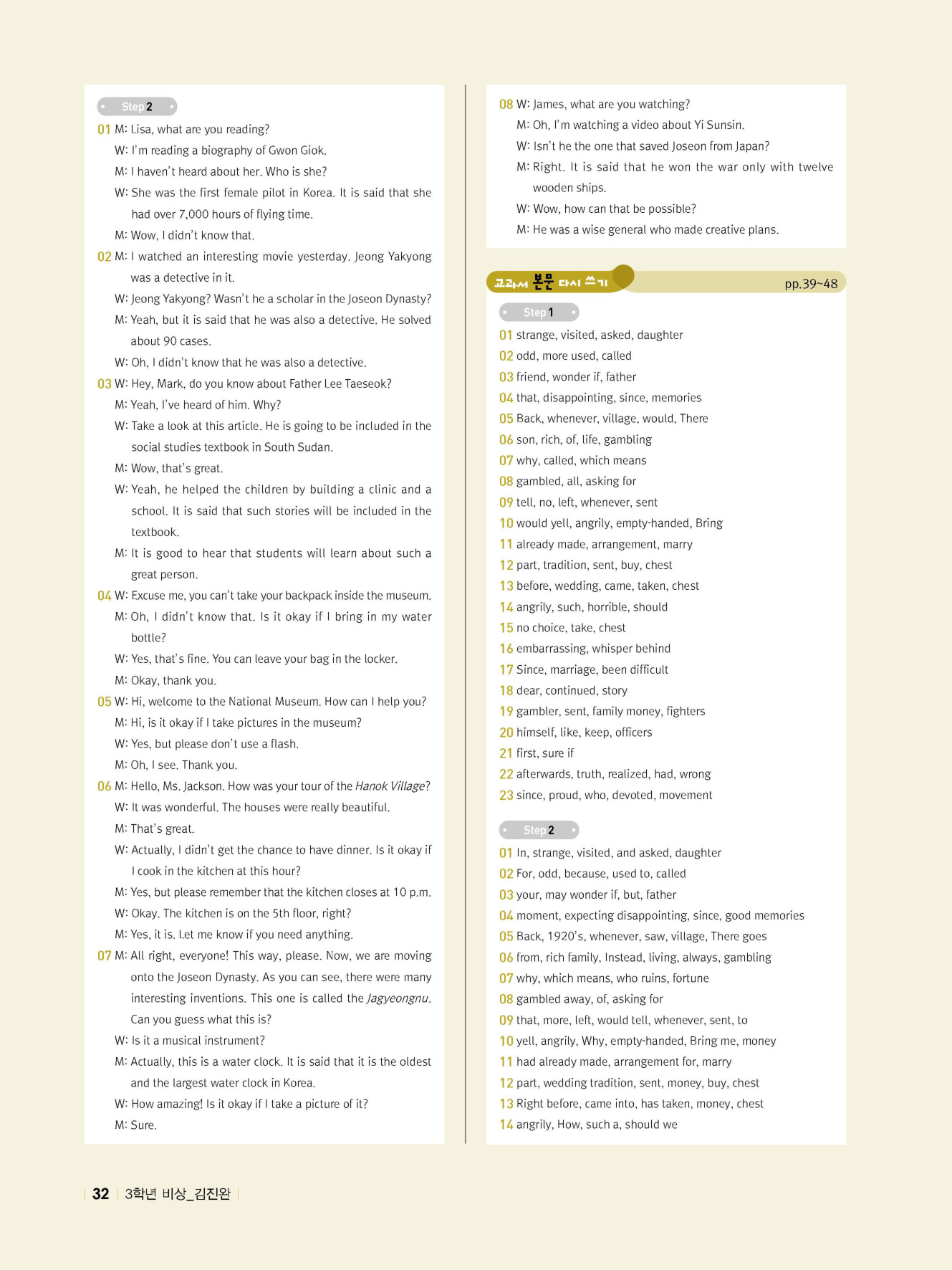 - 교과서 대화 다지기 : STEP 1 & 2