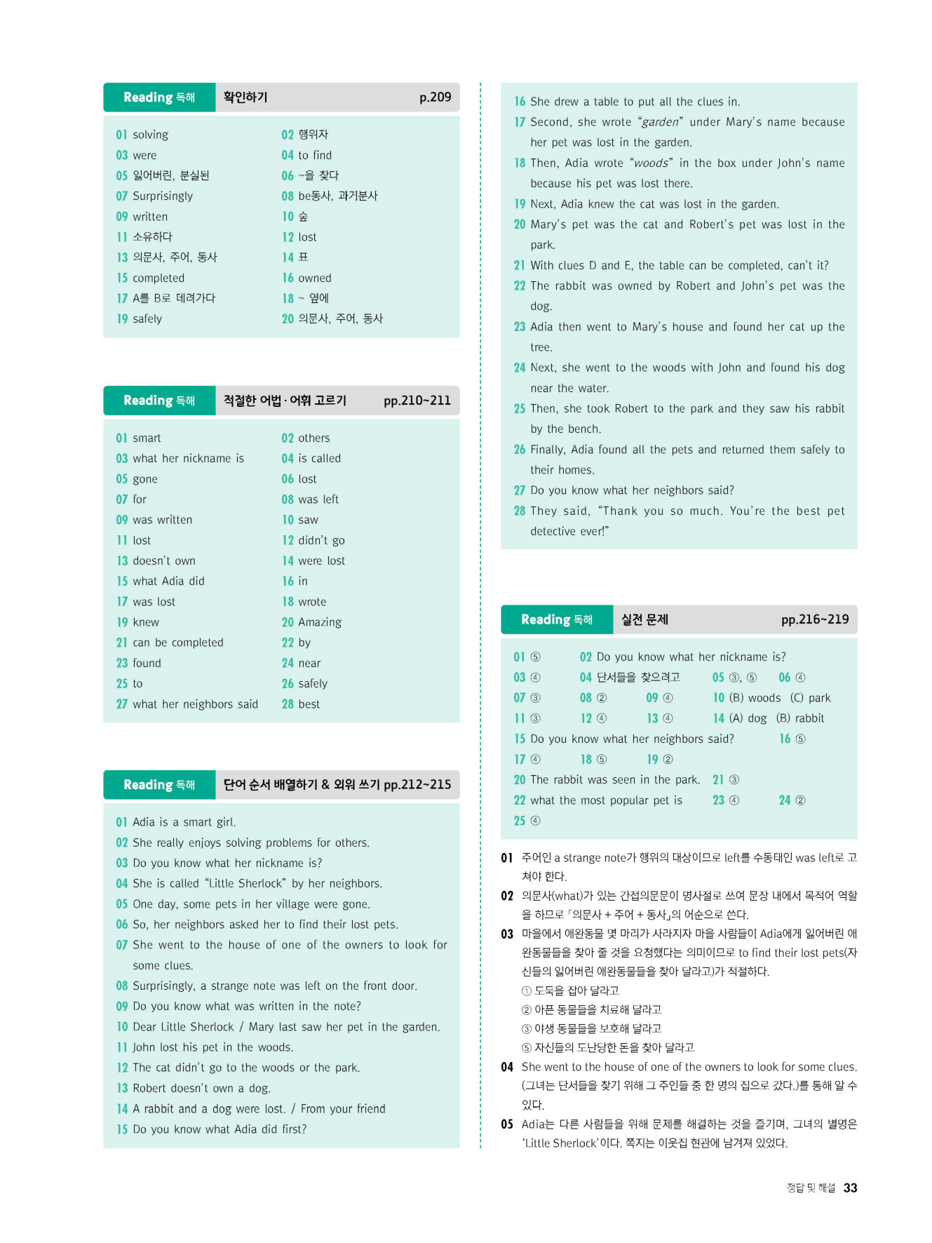 어휘, 대화, 문법, 독해 영역별로 다양한 유형의 서술형 문제를 풀어 봄으로써 학교 시험에서 비중이 확대되고 있는 서술형 평가에 완벽히 대비할 수 있도록 함