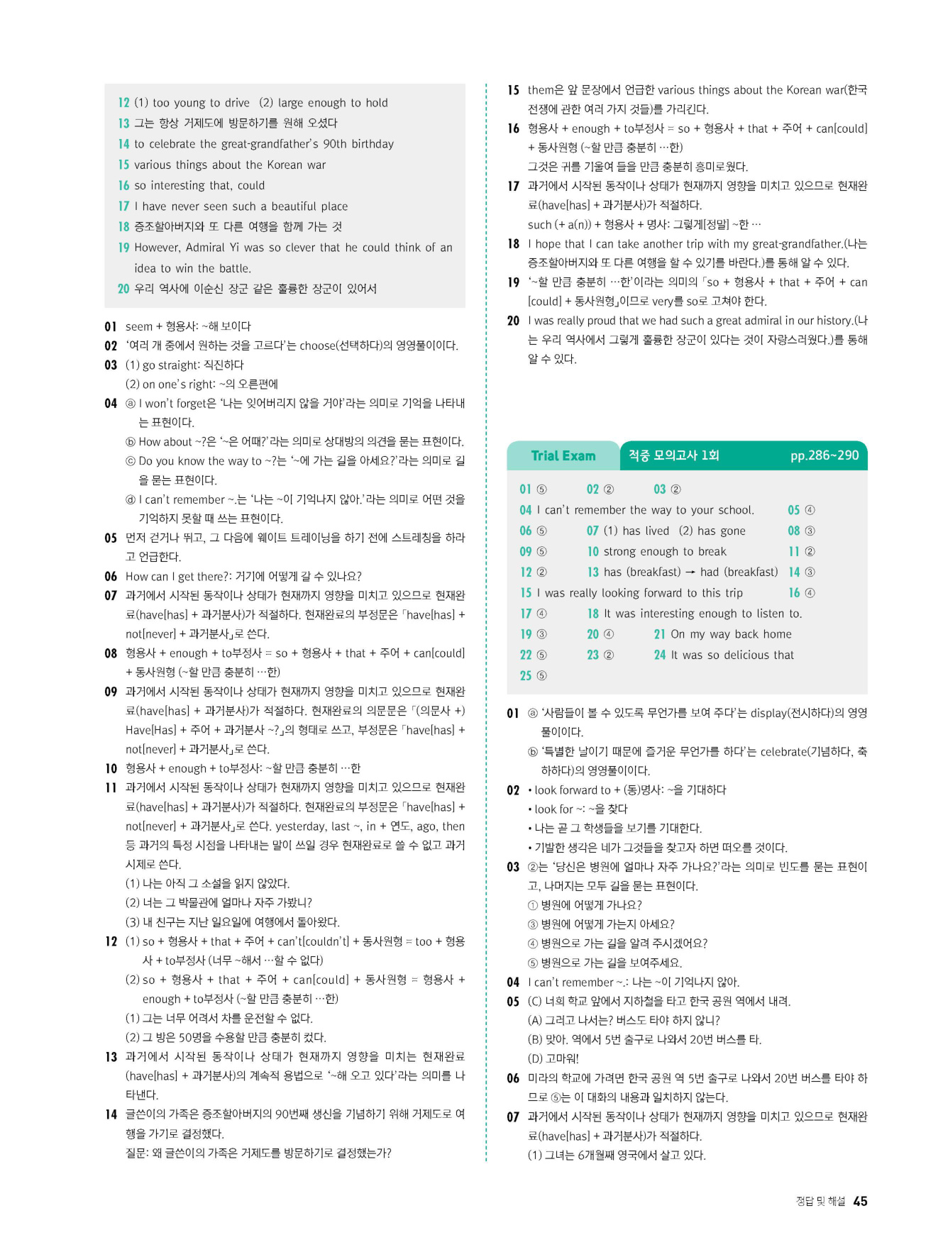 - 시험에 나올 만한 교과서 핵심 문장 복습 코너 수록