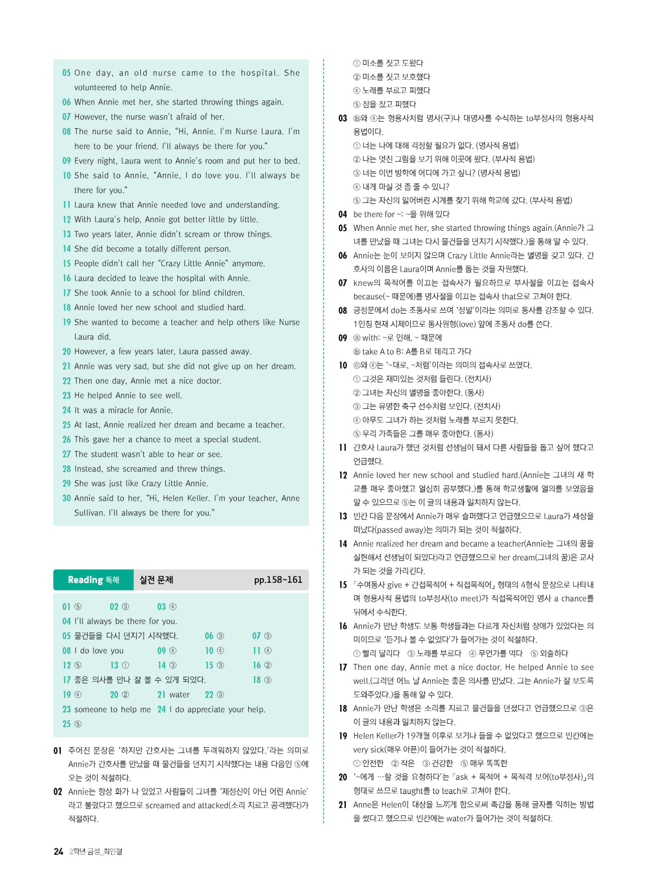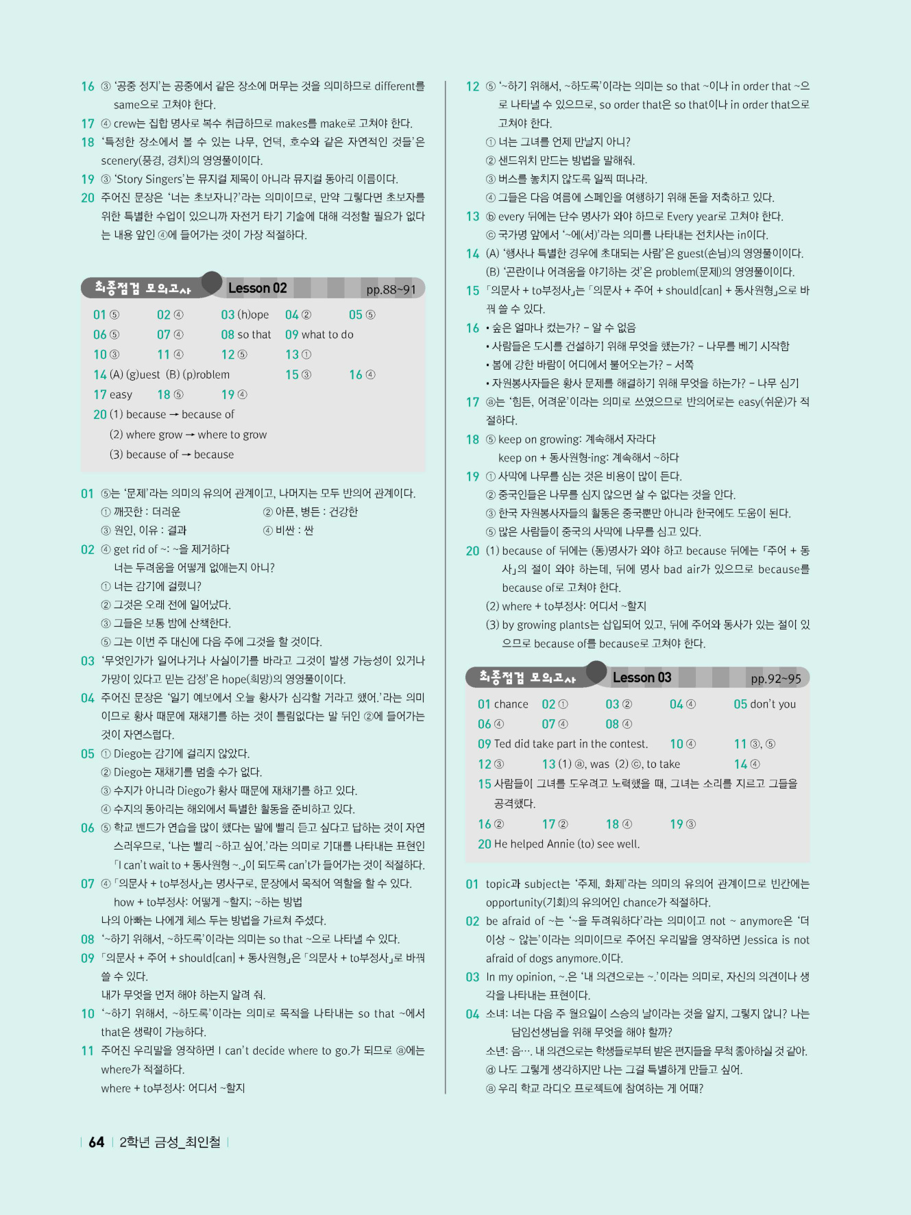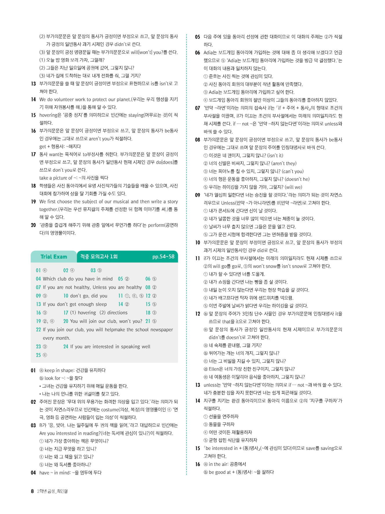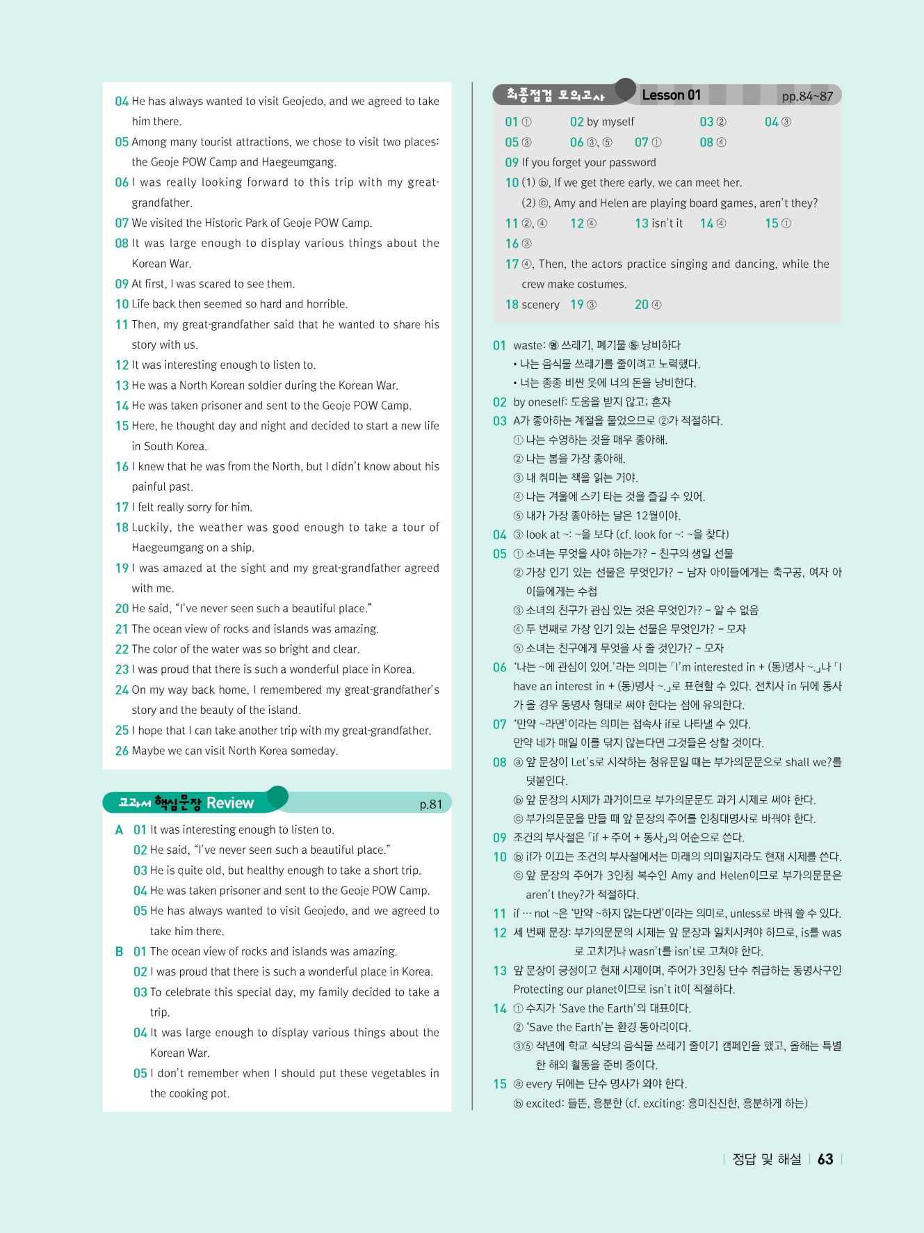 - 시험에 나올 만한 교과서 핵심 문장 복습 코너 수록