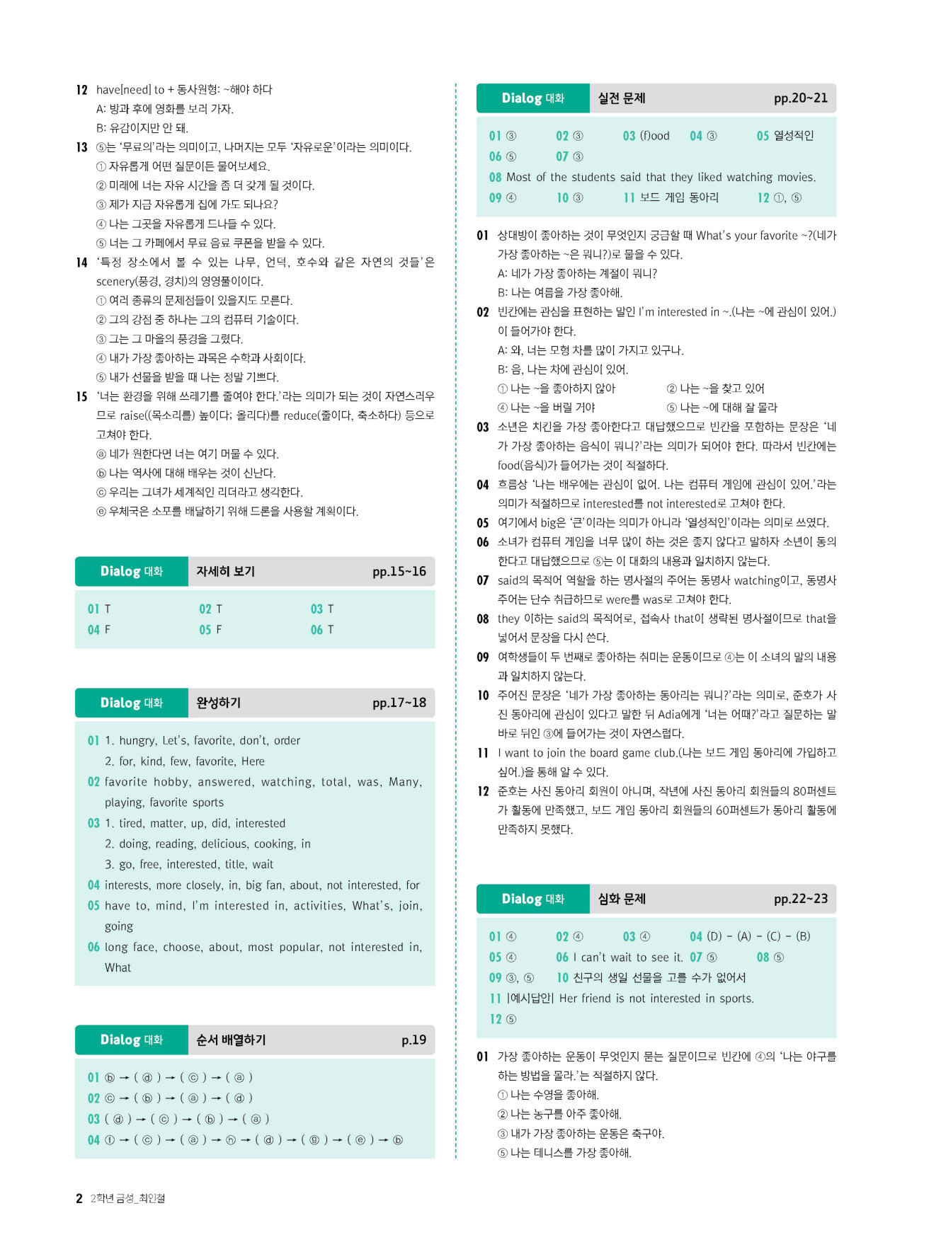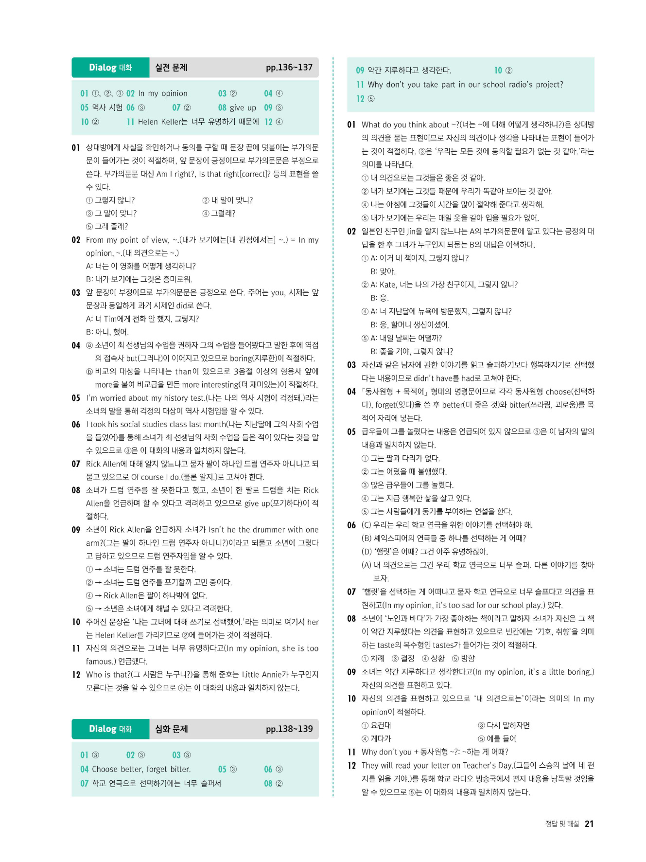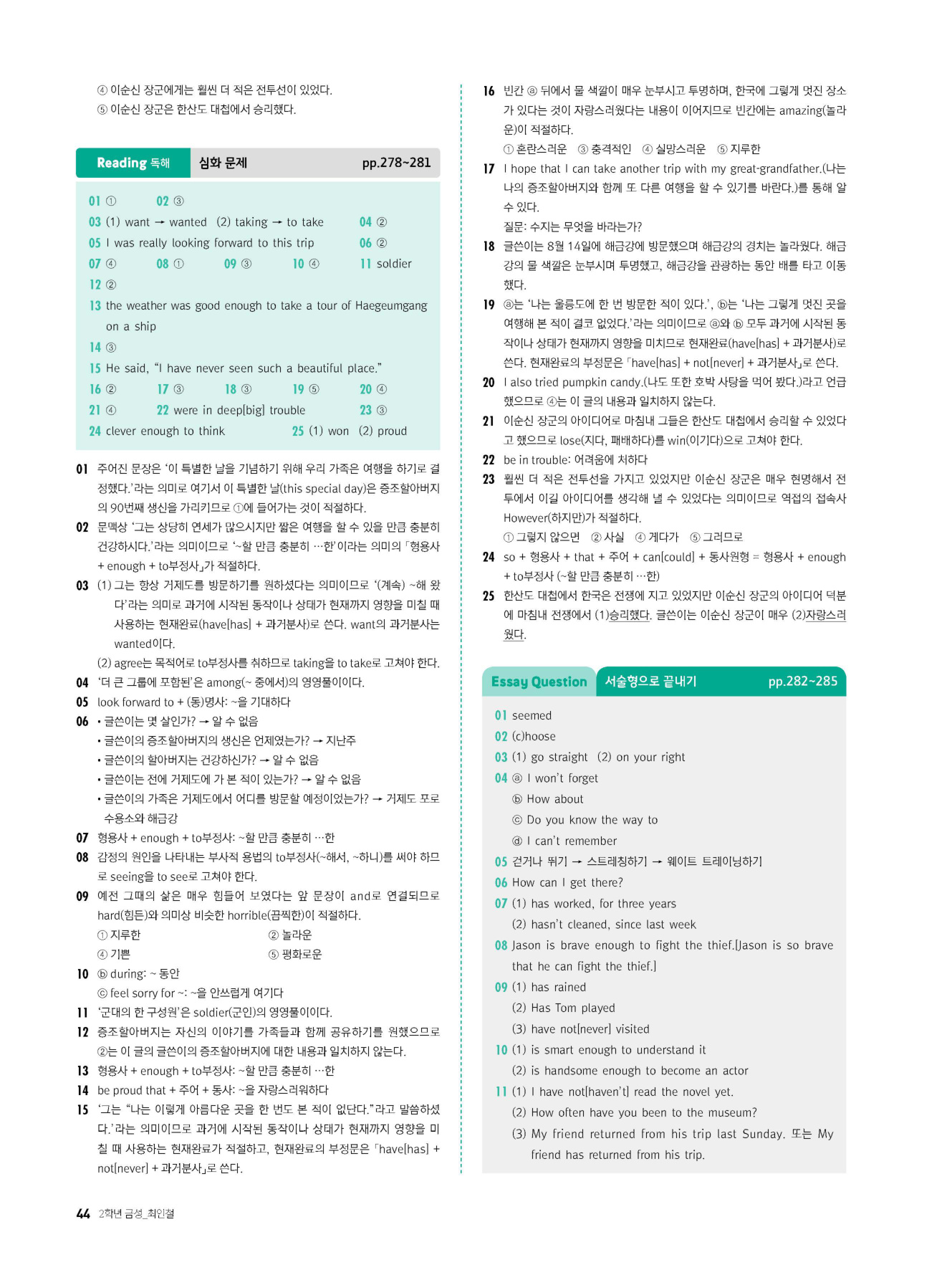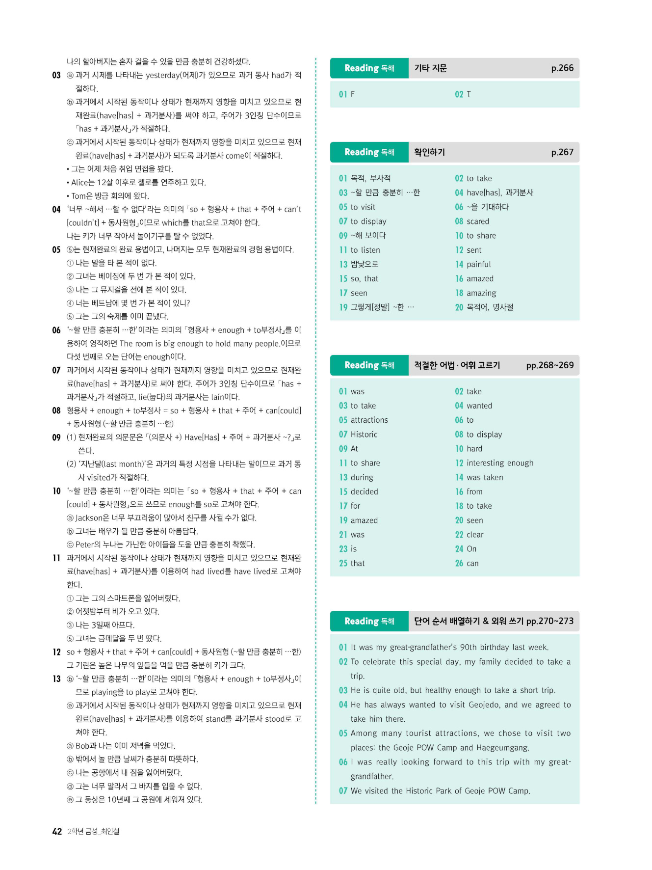 - 시험에 나올 만한 교과서 핵심 문장 복습 코너 수록