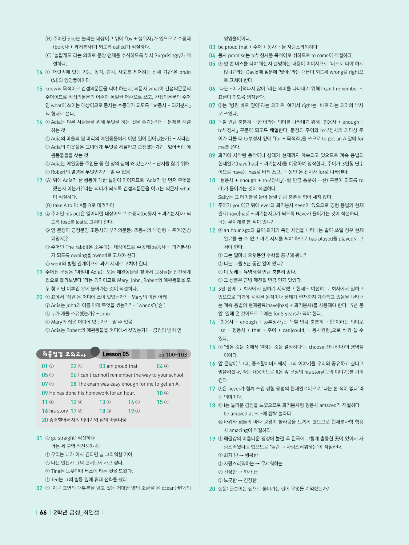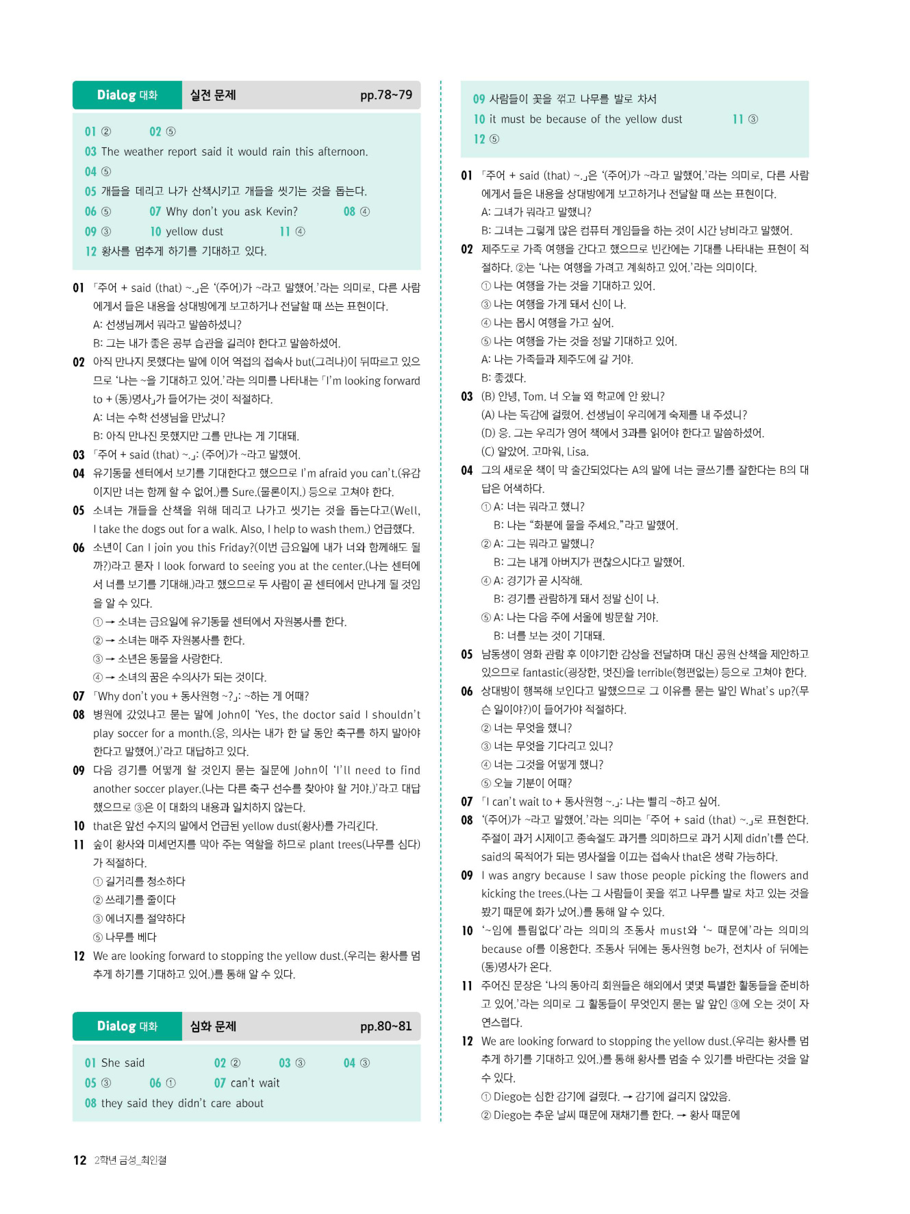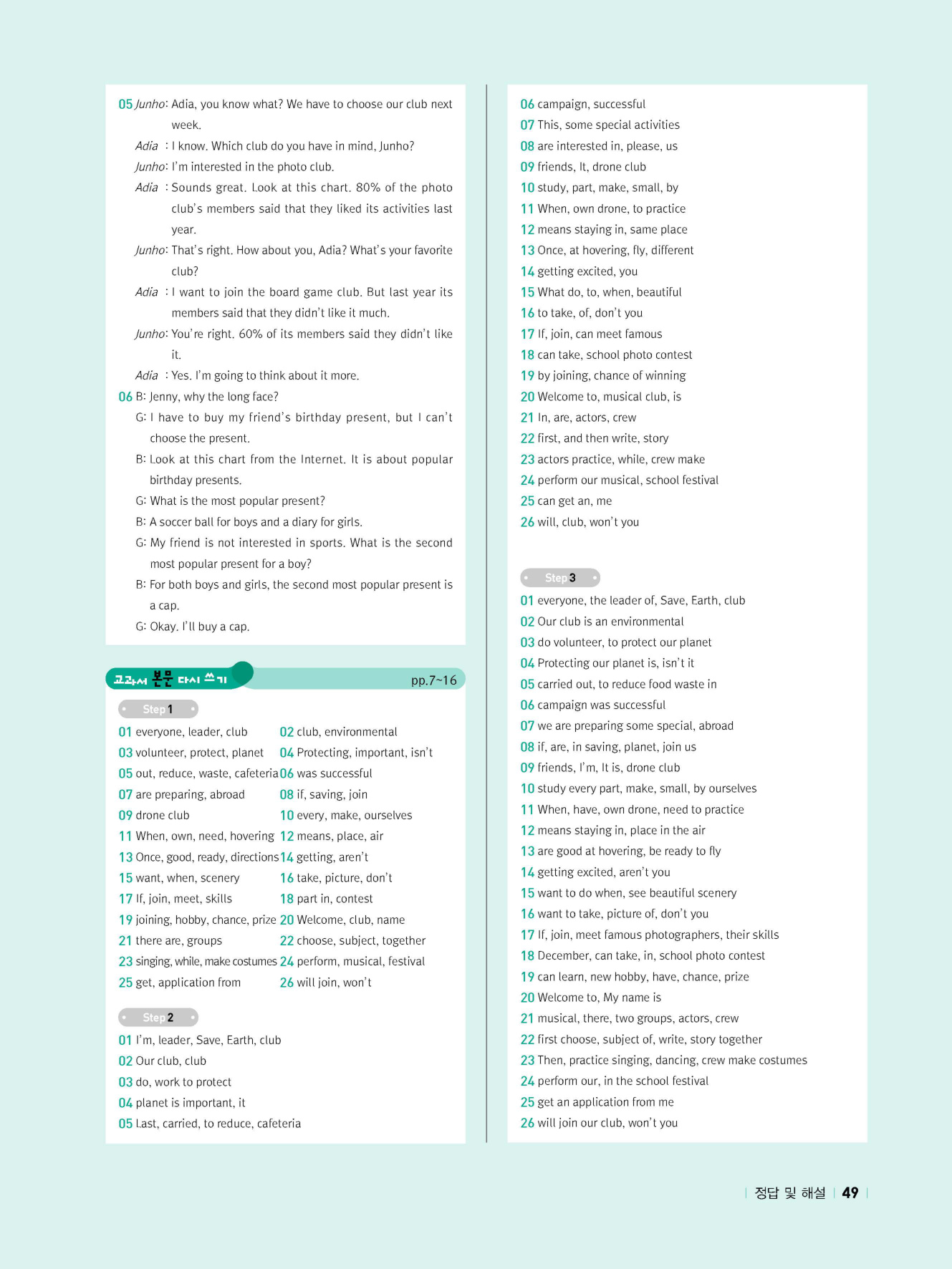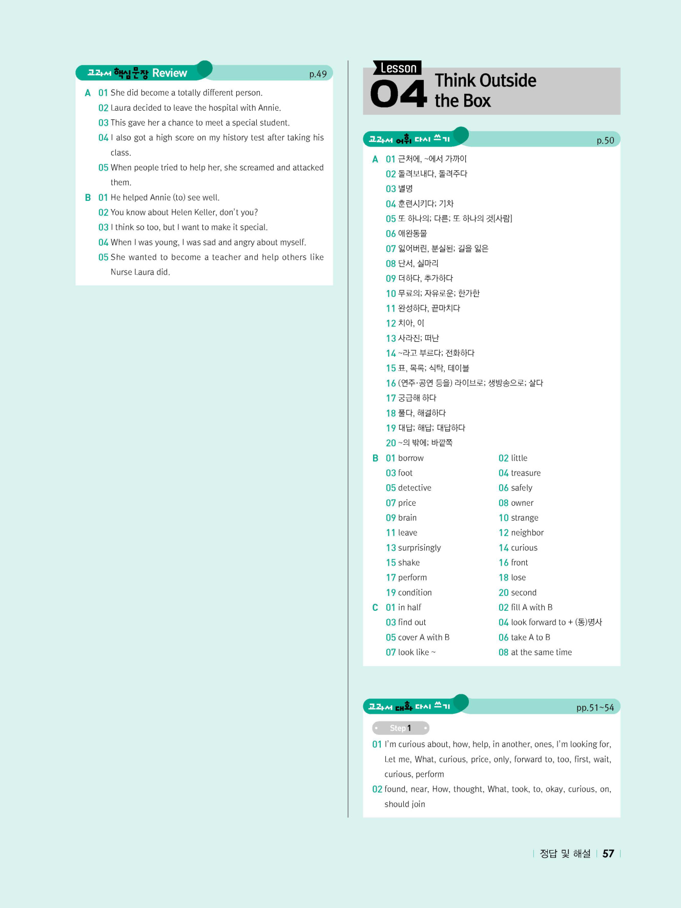 - 시험에 나올 만한 교과서 핵심 문장 복습 코너 수록