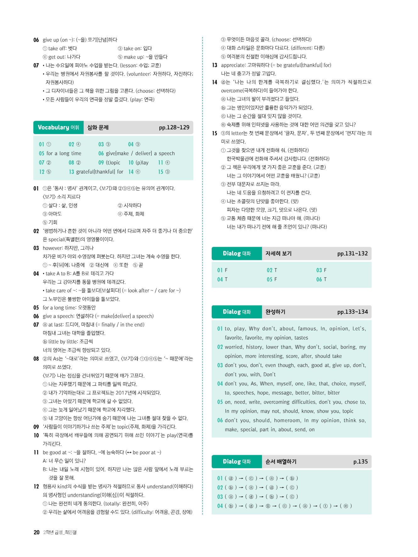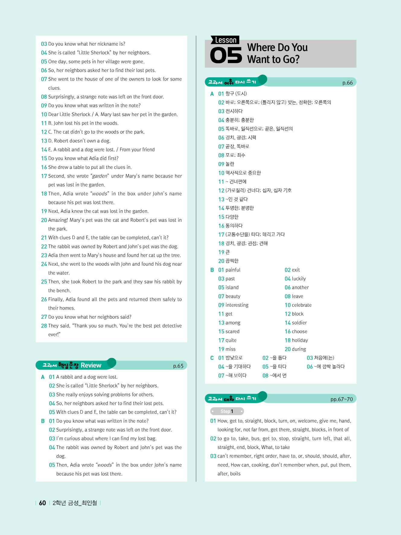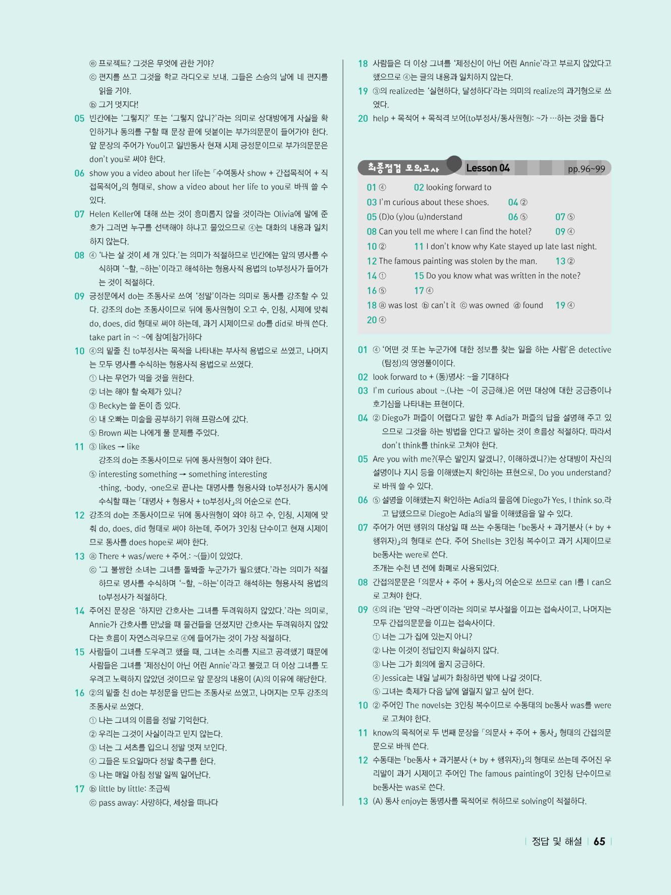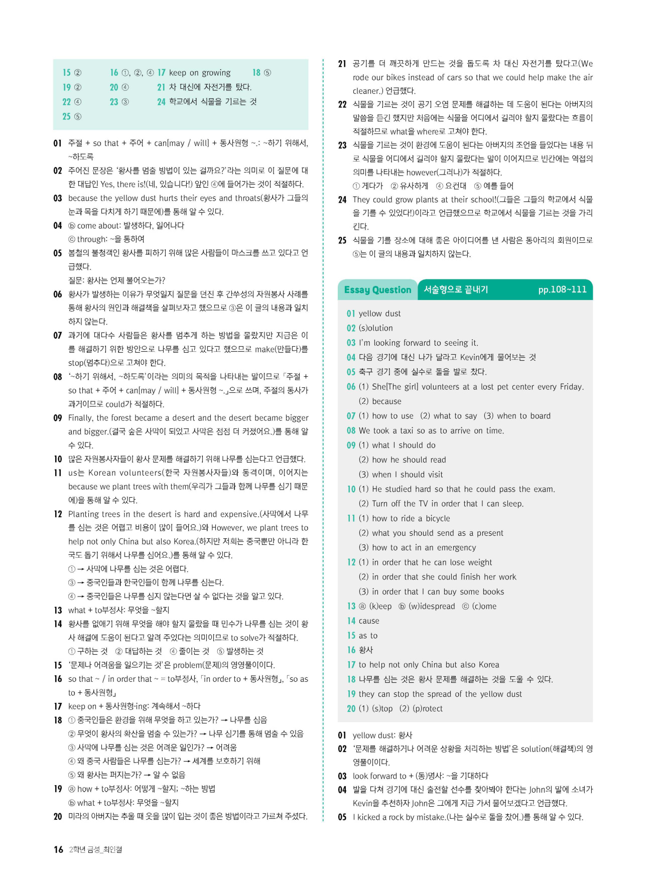 - 시험에 나올 만한 교과서 핵심 문장 복습 코너 수록