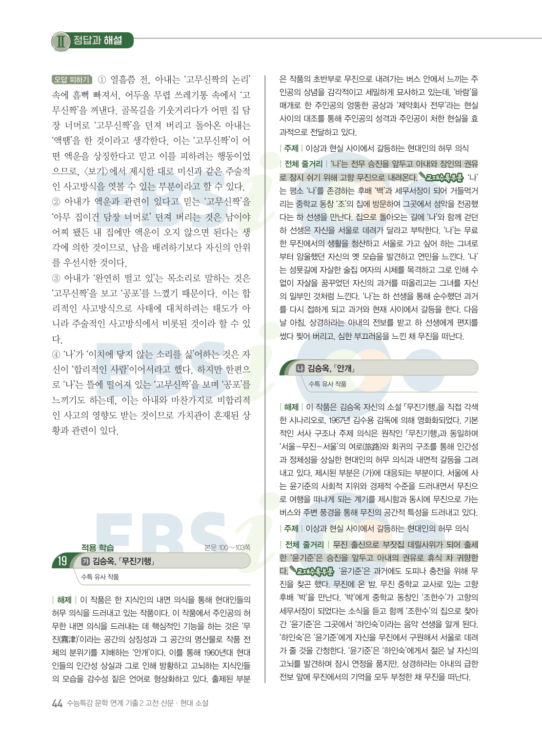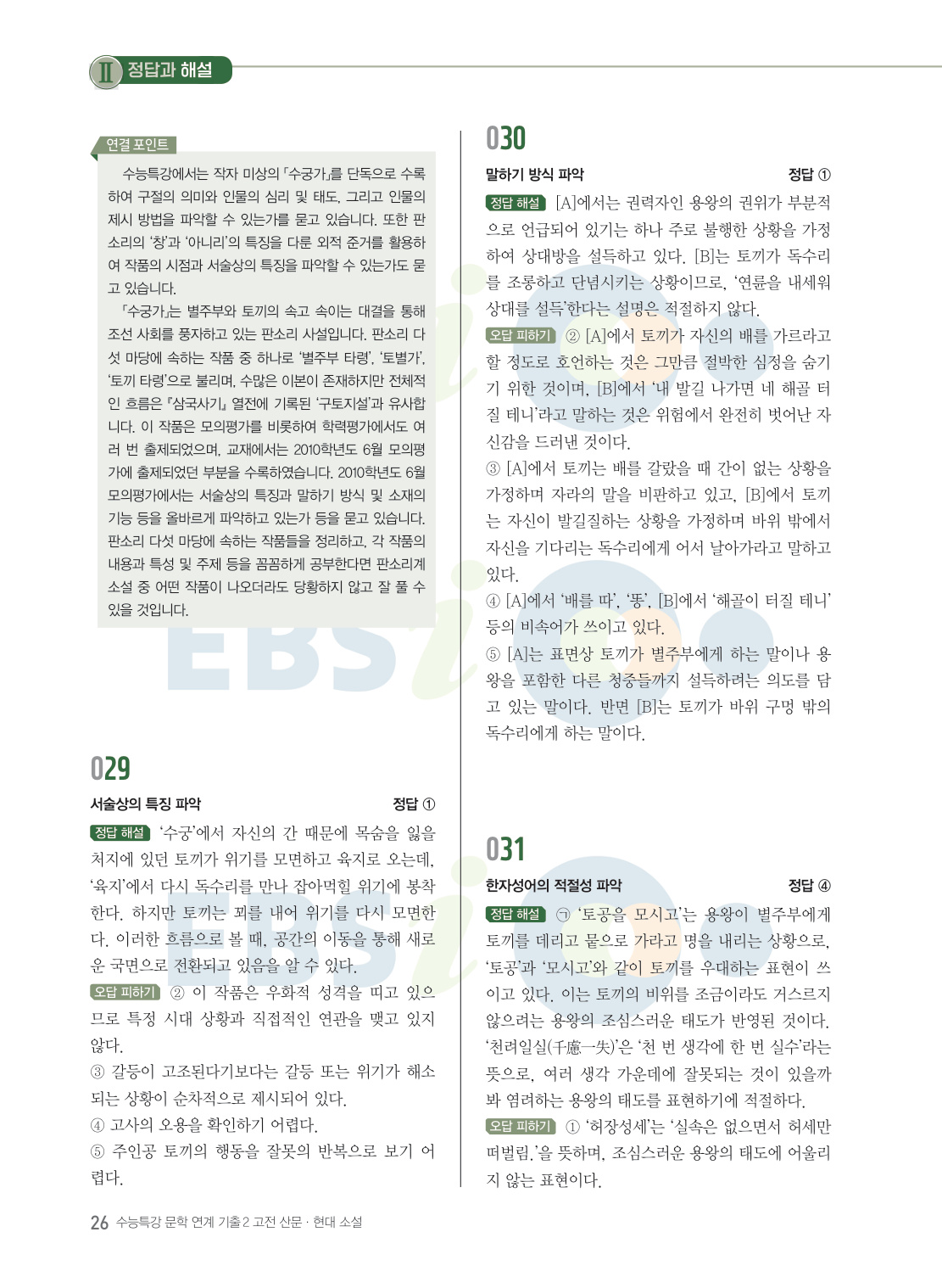 2026학년도 EBS 수능특강 문학 연계 기출2 고전 산문 현대 소설 답지 해설 PDF 사진답지