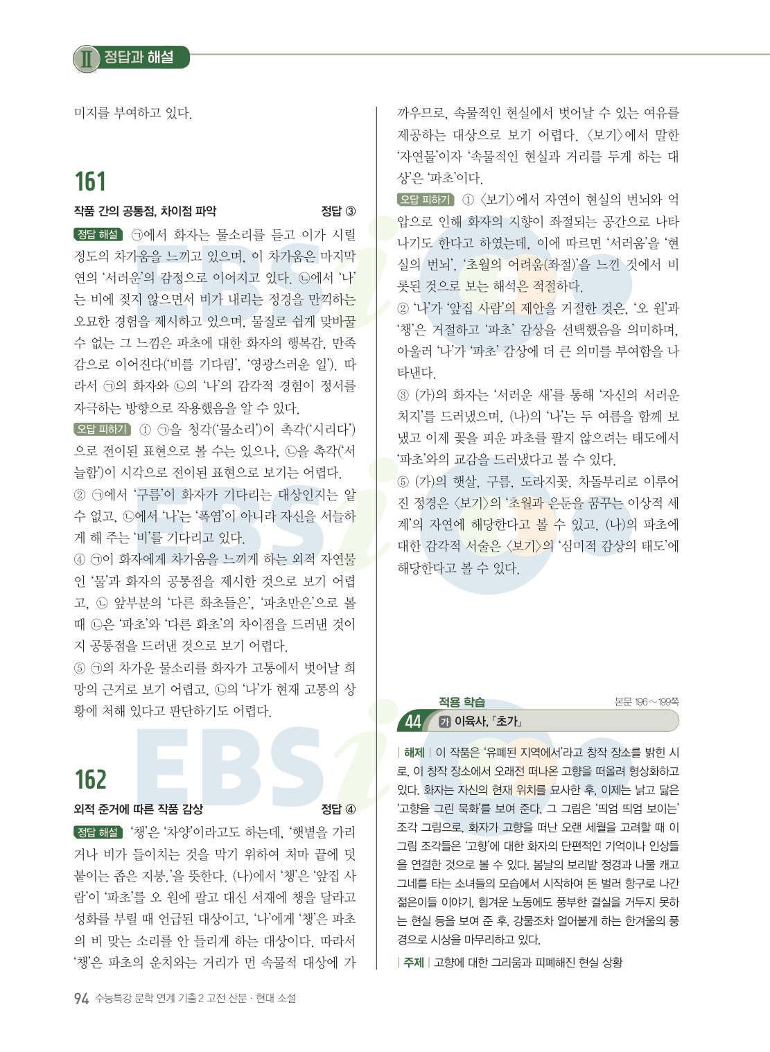 2026학년도 『수능특강 문학』에 실린 지문과 유사도가 높은