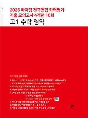 마더텅에서 출판한 2026년 대비 전국연합 학력평가 기출 모의고사 4개년 16회 고1 수학 영역입니다 이 교재는 고등학교 1학년 학생들이 치르는 전국연합 학력평가의 수학 영역 기출문제를 4개년치 집중적으로 수록하고 있습니다 16회분의 실전 모의고사 형태를 통해 고등학교 수학의 핵심 개념과 문제 유형을 익히고 실전 문제 해결 능력을 높이는 데 최적화된 학습서입니다 내신 및 모의고사에서 고득점을 목표로 하는 학생들에게 필수적인 실전 훈련 교재입니다