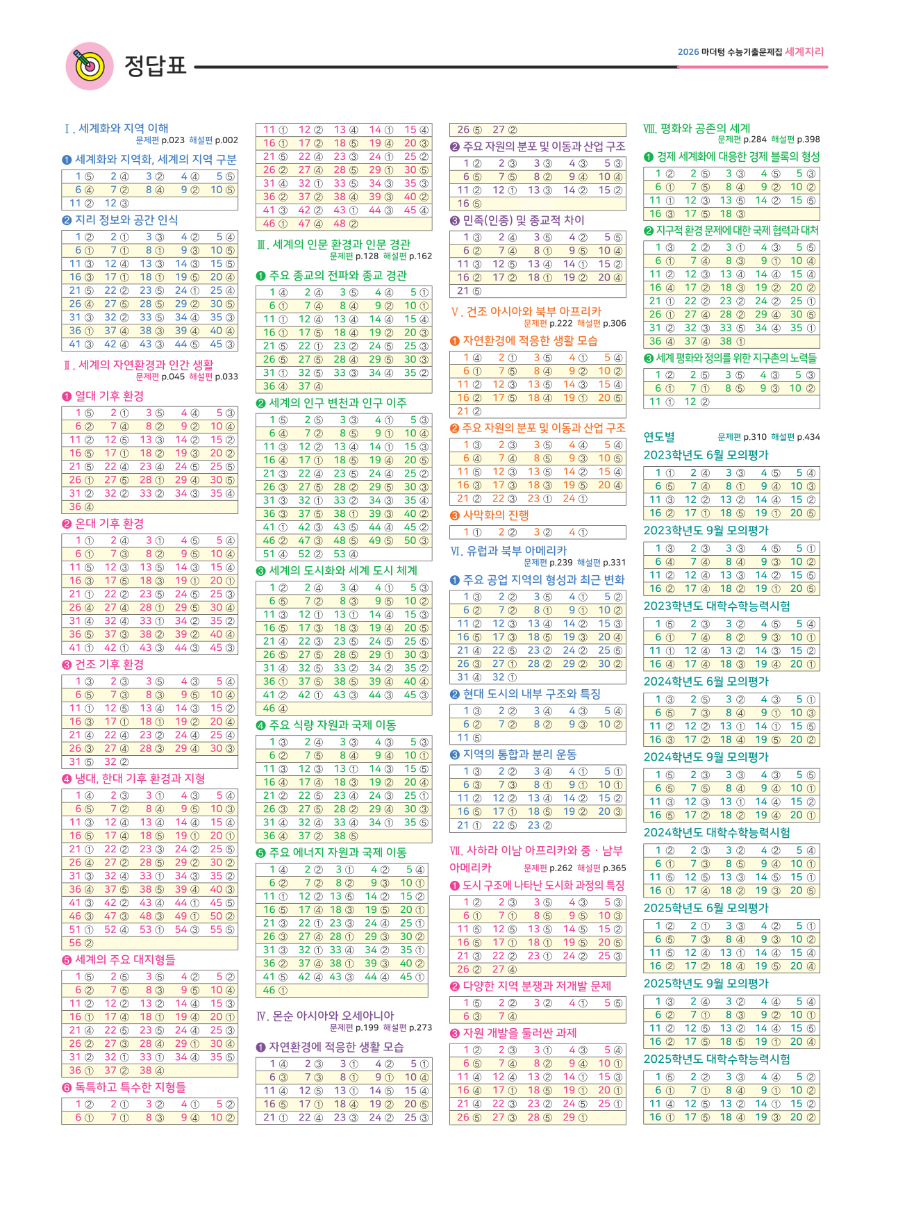 2026 마더텅 수능기출문제집 세계지리_빠른정답표.pdf