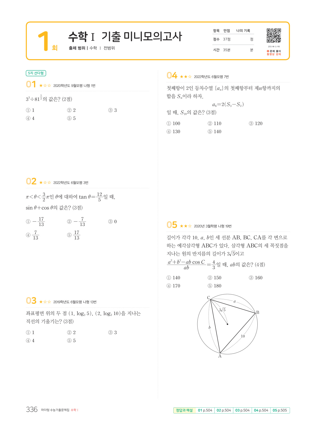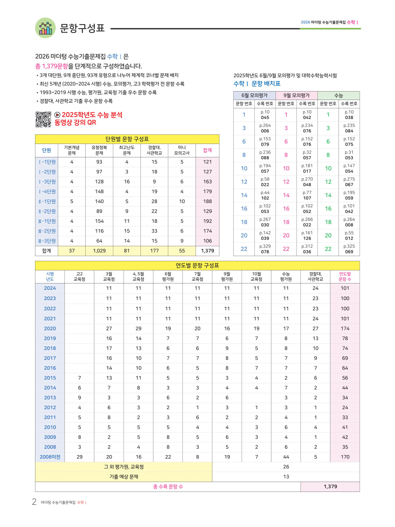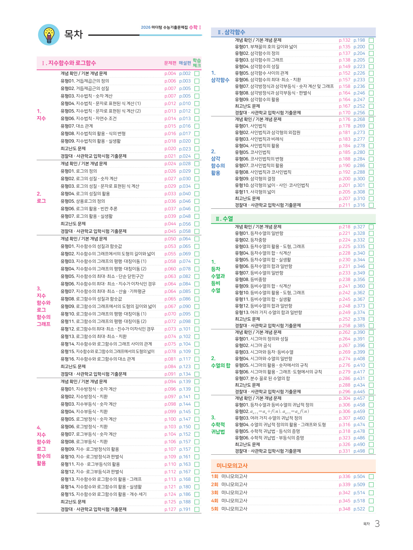 → 3개 대단원, 9개 중단원, 93개 유형, 5회 미니모의고사