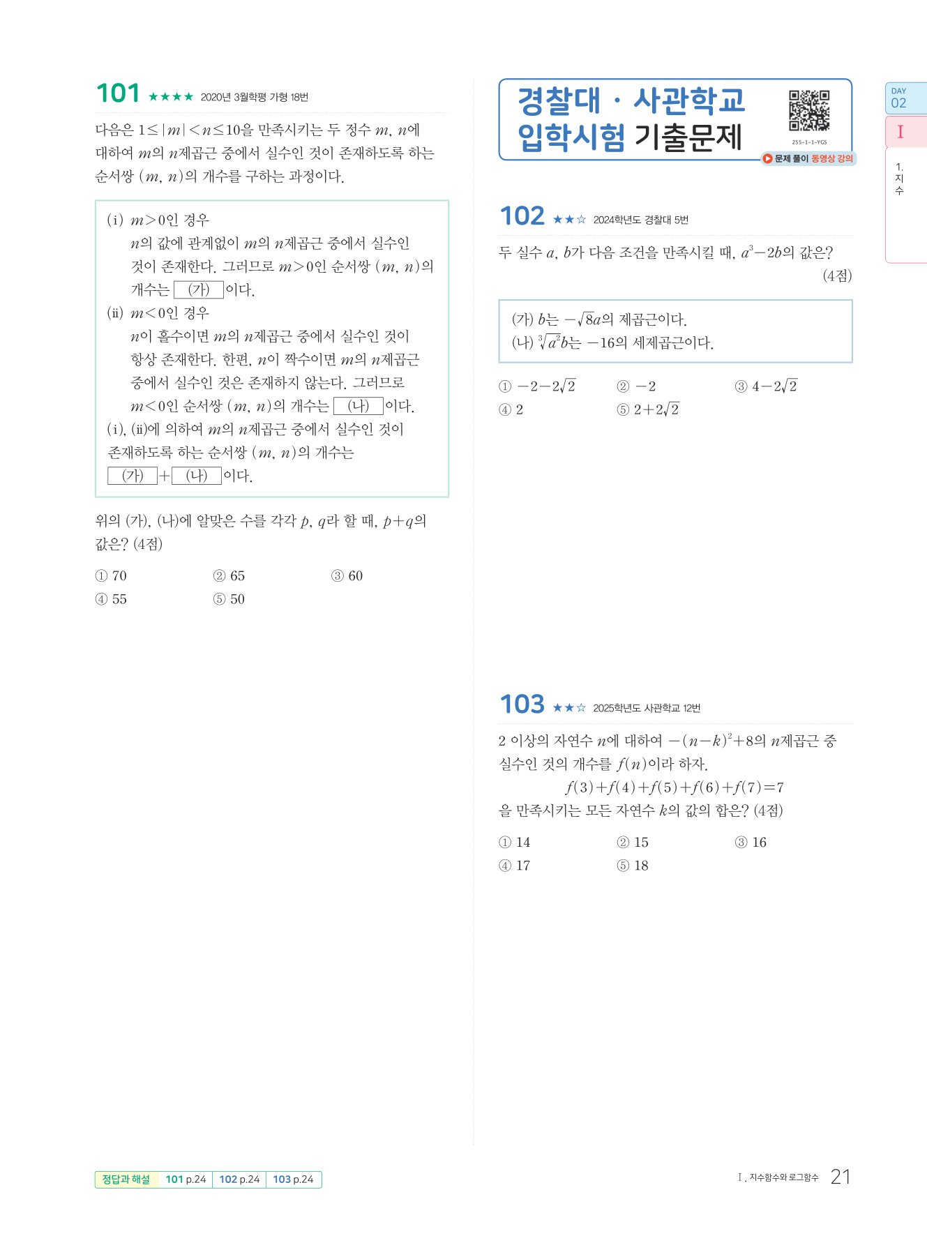 ④ 경찰대, 사관학교 기출문제 ⑤ 미니모의고사