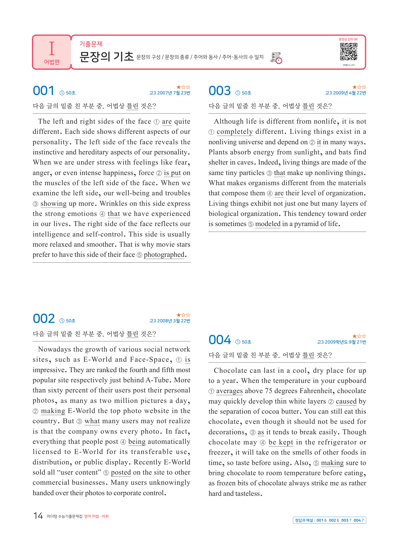 - 수능에 효과적으로 대비할 수 있는 친절한 문제풀이 무료 동영상 강의 QR 코드 제공