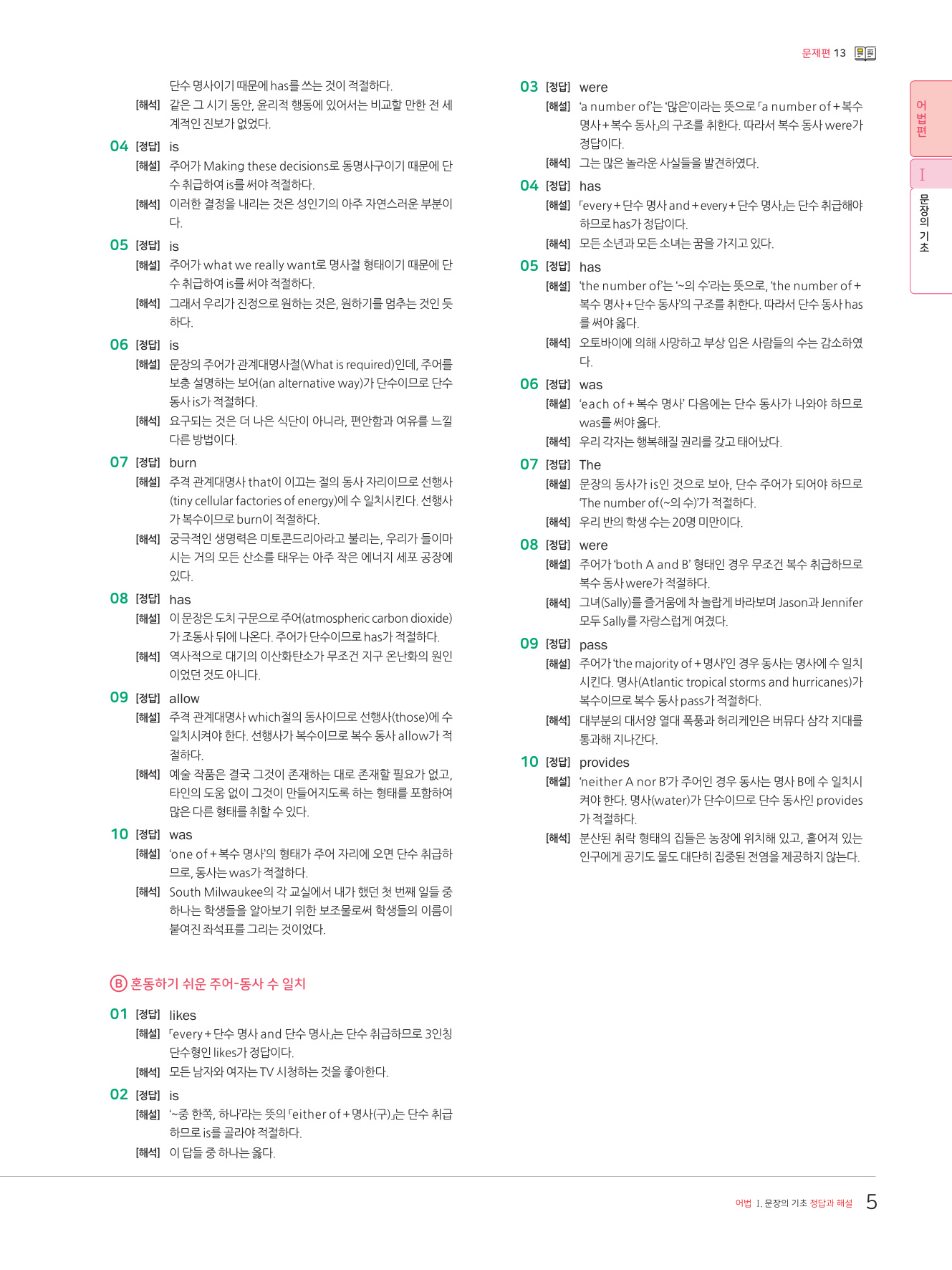 문장의 구성 / 문장의 종류 / 주어와 동사 / 주어-동사의 수 일치