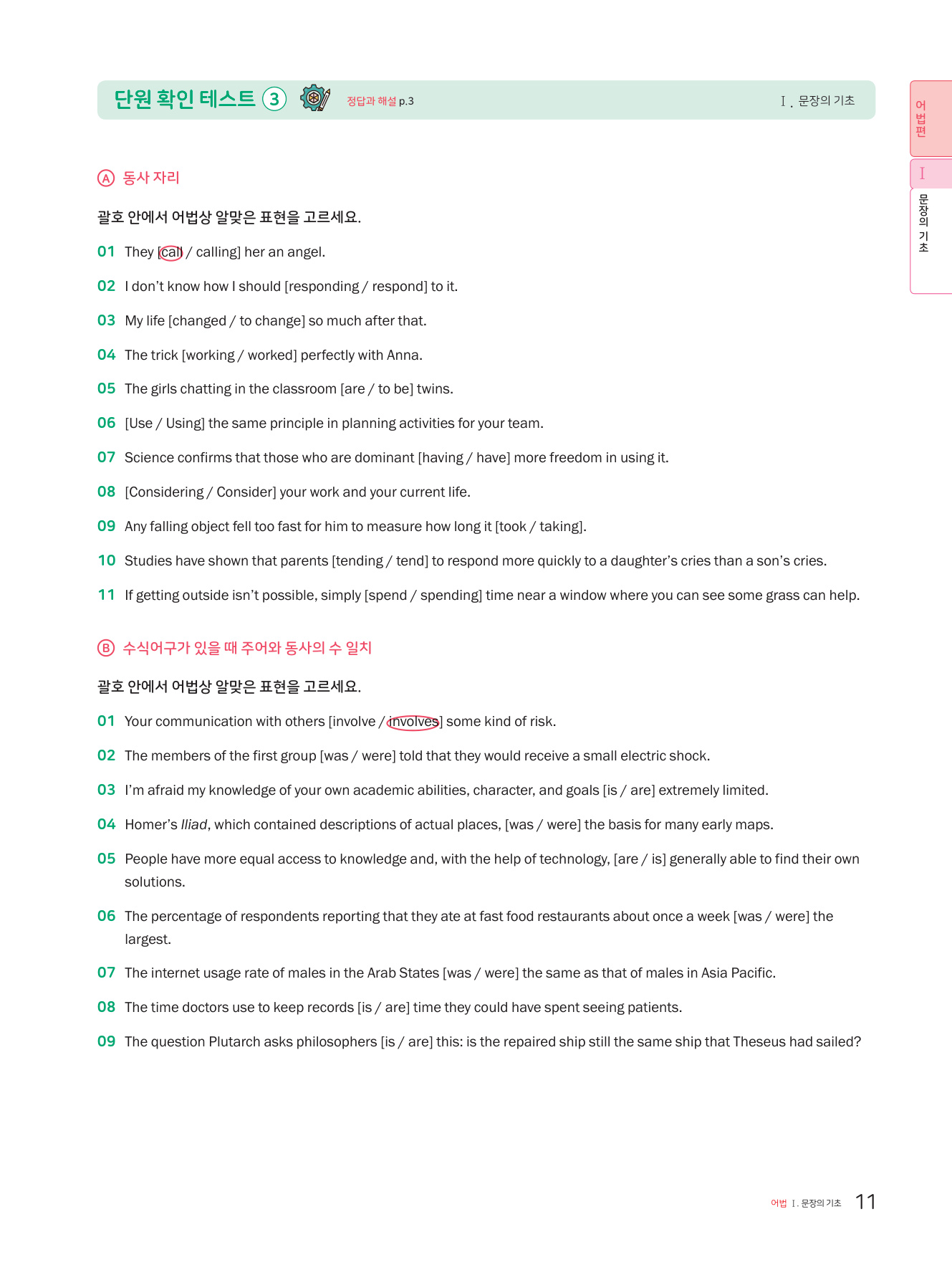 문장의 구성 / 문장의 종류 / 주어와 동사 / 주어-동사의 수 일치