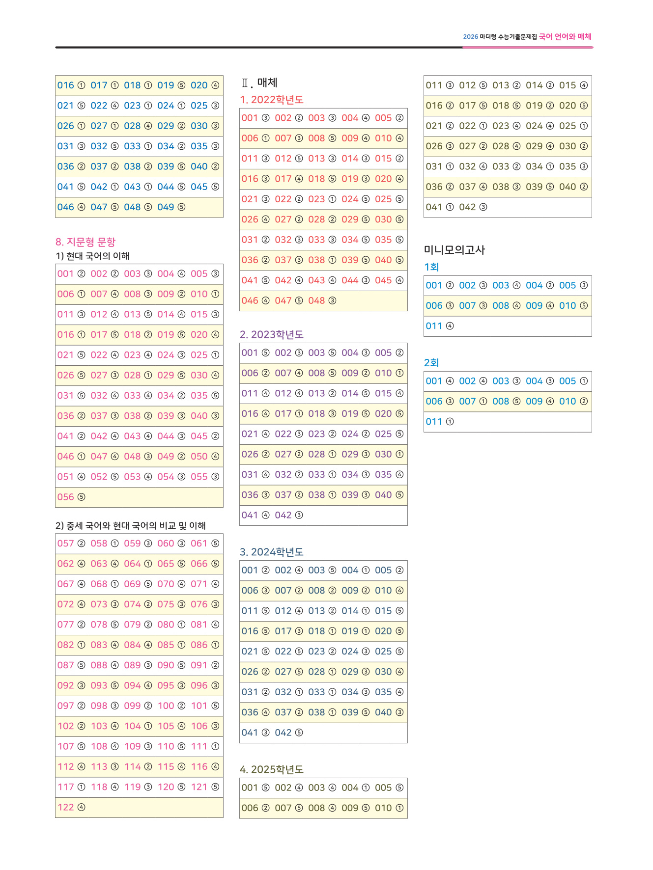 - [언어] 2006~2025학년도 최신 20개년 수능·모의평가 기출문제 전 문항 + 2022학년도 수능 평가원 예시문항 + 2013~2024년 최신 12개년 전국연합 학력평가 기출문제 전 문항 수록