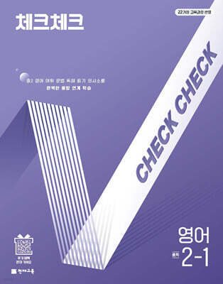 2022 개정 교육과정은 영어 학습 방식으로 보기(viewing)와 제시하기(presenting)를 새롭게 추가하였습니다. 즉 다양한 의사소통 생활에서 그 맥락을 파악하고 효과적인 전략을 사용하여 자신의 생각을 표현하는 능력이 중요해졌습니다. 따라서 체크체크는 다양한 창의 융합 서술형 문제를 통해 2022 개정 교육과정에서 추구하는 실질적인 영어 의사소통 역량을 구현합니다. 또한 중학교 내신 시험에도 효과적으로 대비할 수 있도록 내용을 쉽고 재미있게 구성했습니다.