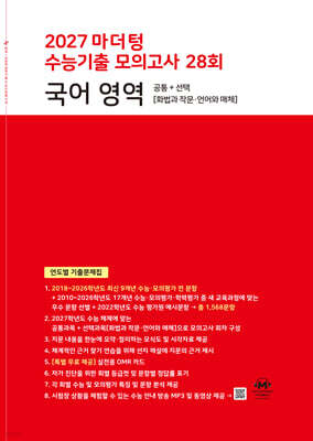2027 마더텅 수능기출 모의고사 28회 국어 영역 2026년 공통 선택화법과 작문언어와 매체 연도별 기출문제집 8절 답지 입니다.