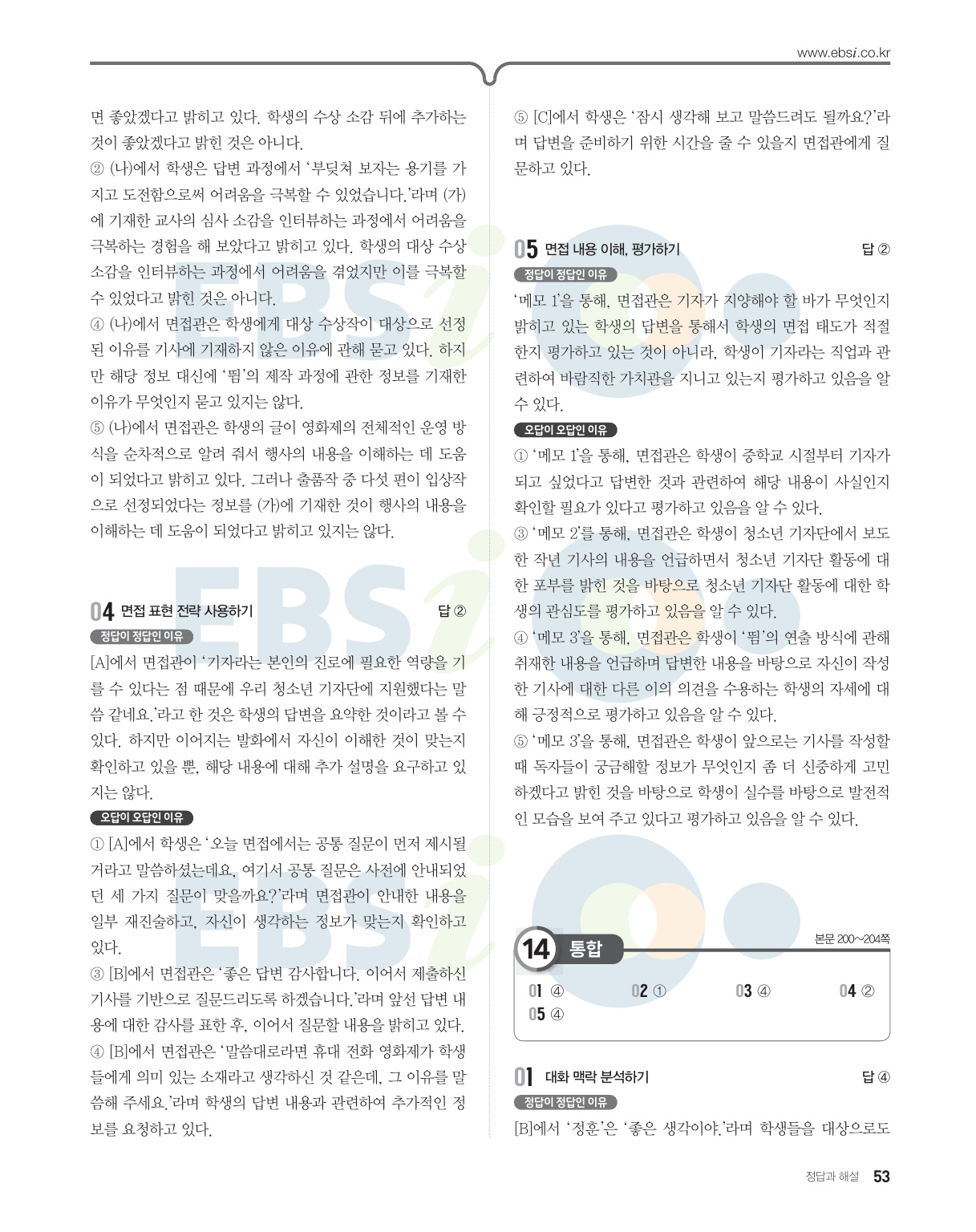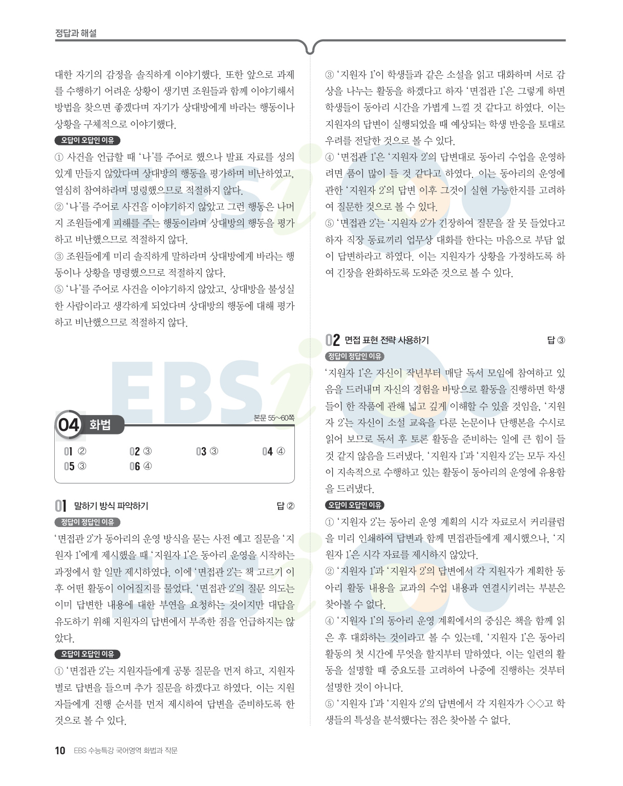 10쪽 1번 면접 맥락 분석하기 → 말하기 방식 파악하기