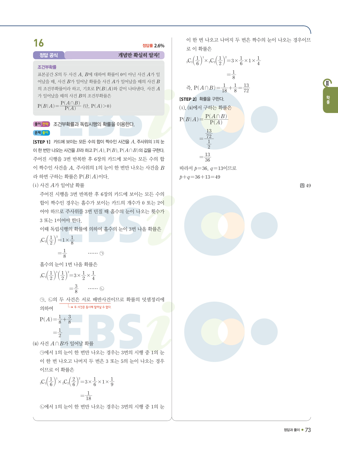 유형2 확률의 연산(조건부확률, 곱셈정리, 사건의 독립)